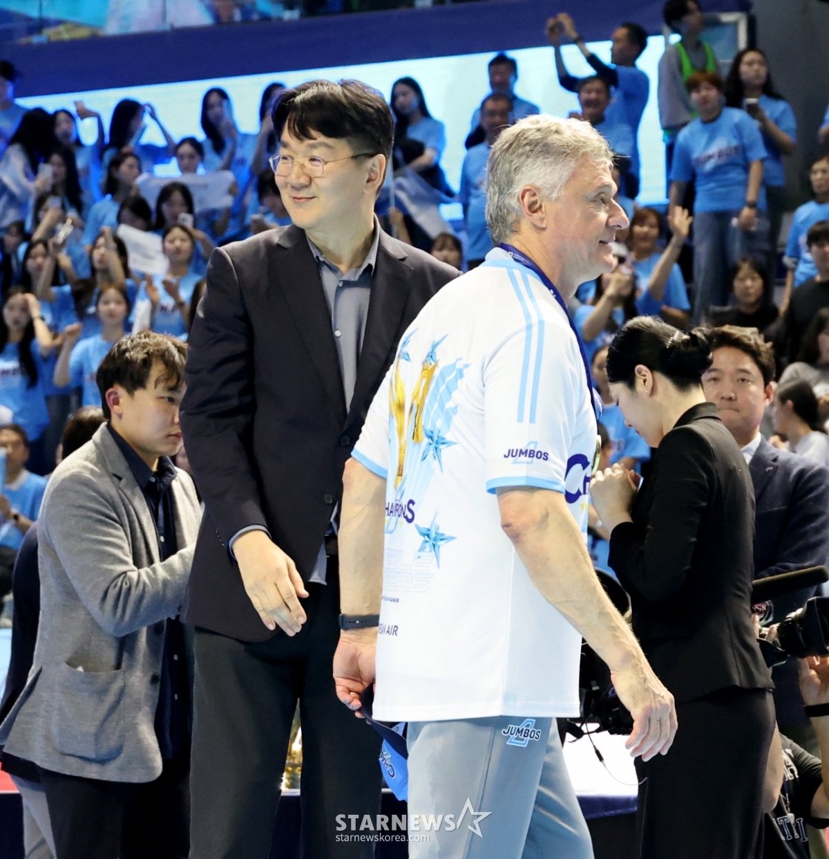 스포츠일반[포토]'헤난 감독에 금메달 걸어주고' 조원태 KOVO총재발행 : 2026.04.10 ・ 22:36조회수 :인천=강영조 선임기자조원태 대한항공 구단주이자 KOVO 총재가 10일 인천 계양체육관에서 열린 진에어 2025-2026 V리그 챔피언결정전 대한항공과 현대캐피탈 5차전에서 승리하며 우승한 대한항공 헤난 감독에 금메달을 걸어주고 있다. 2026.04.10.<저작권자 © 스타뉴스, 무단전재 및 재배포 금지>브리핑추천 기사강영조 선임기자기자홈좋아요스포츠-일반의 인기 급상승 뉴스스포츠-일반의 최신 뉴스AD