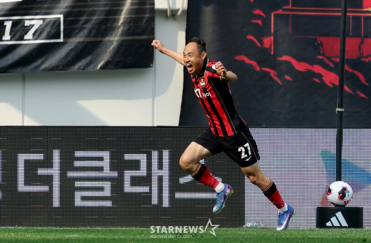 하나은행 K리그1 2026 FC서울 대 전북현대 경기가 11일 서울월드컵경기장에서 열렸다. FC서울 문선민은 후반 추가 시간에 클리말라가 결승골을 터뜨리자 기뻐했다. 문선민은 마치 자신이 골을 넣은 듯 기뻐하는 모습을 보였다.