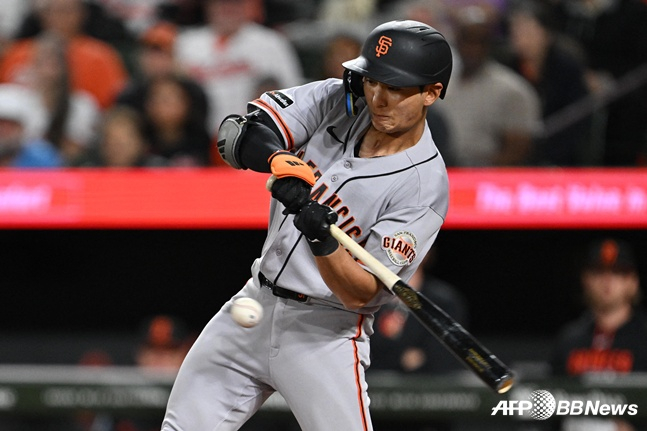 팀이 6-2로 앞선 9회초 선두 타자로 나선 이정후는 볼티모어의 마무리 라이언 헬슬리를 상대했다. 존을 벗어나는 초구 높은 커브를 골라낸 이정후는 2구 존 하단으로 향하는 시속 98.4마일(158.4㎞) 포심을 공략했다. 1-2루 간을 빠르게 갈랐다.