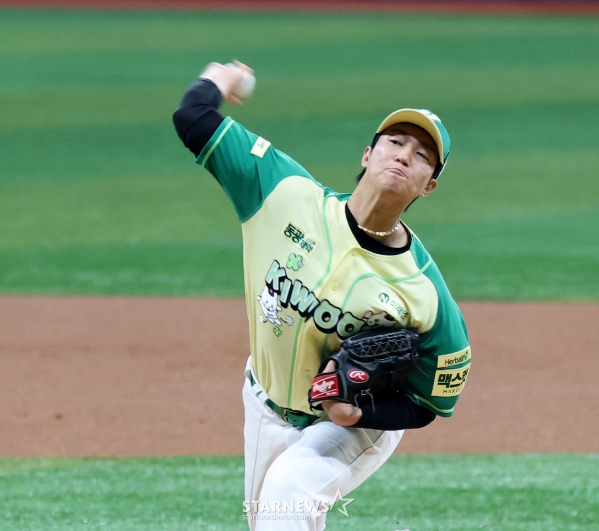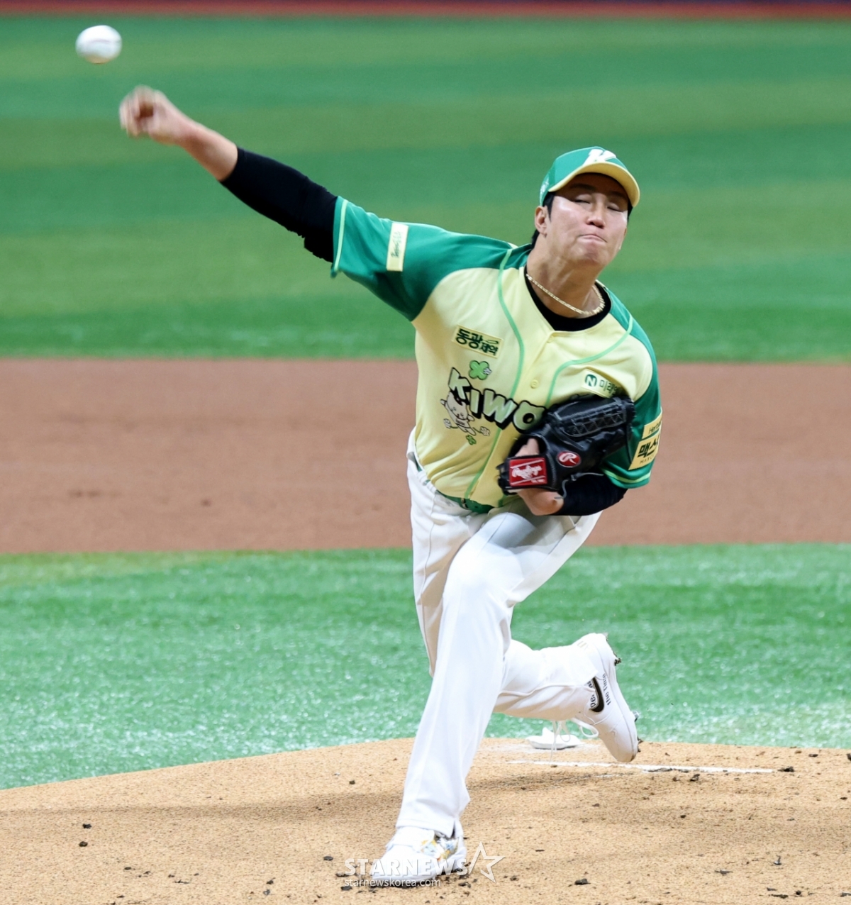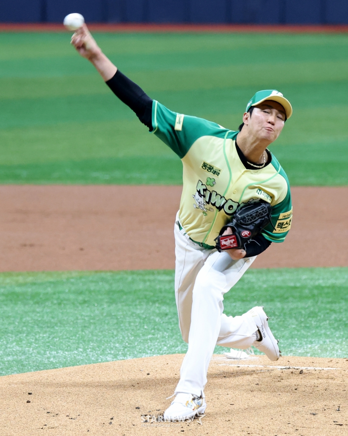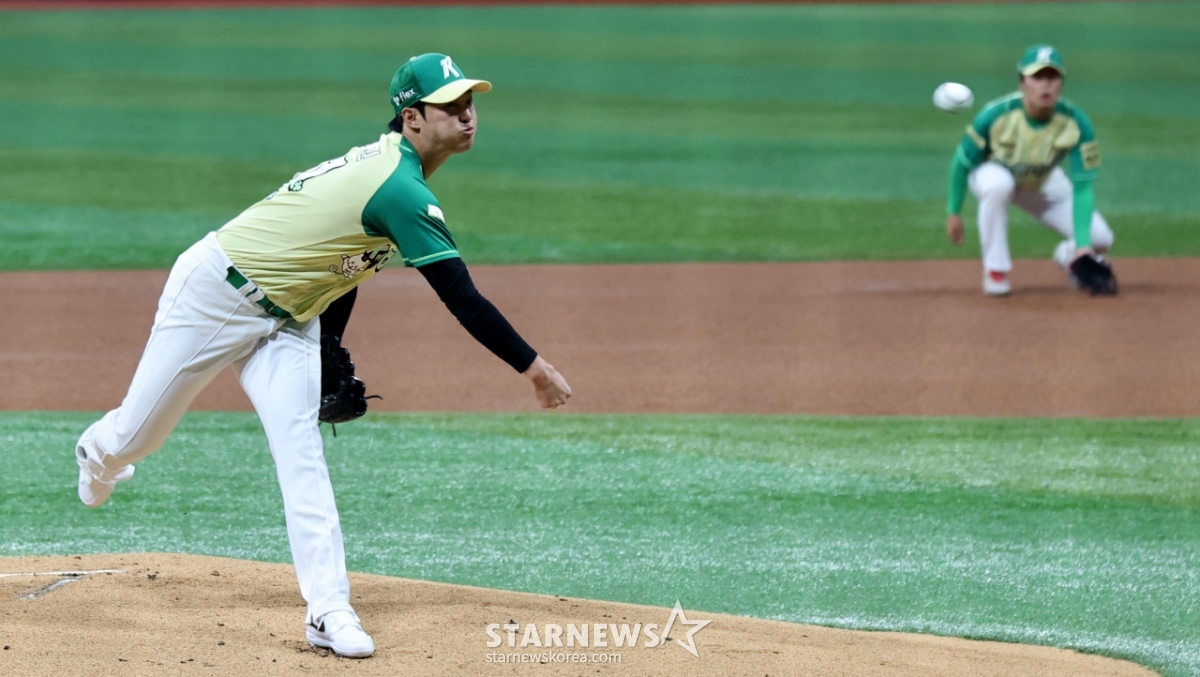 키움 에이스 안우진이 12일 고척스카이돔에서 열린 2026 KBO리그 롯데자이언츠와 키움히어로즈의 경기에서 1이닝 선발로 나서 몸상태를 점검하고 있다. 안우진은 160km 볼스피드가 나왔고 1안타 1볼넷 무실점으로 1이닝을 마무리했다. 2026.04.12.