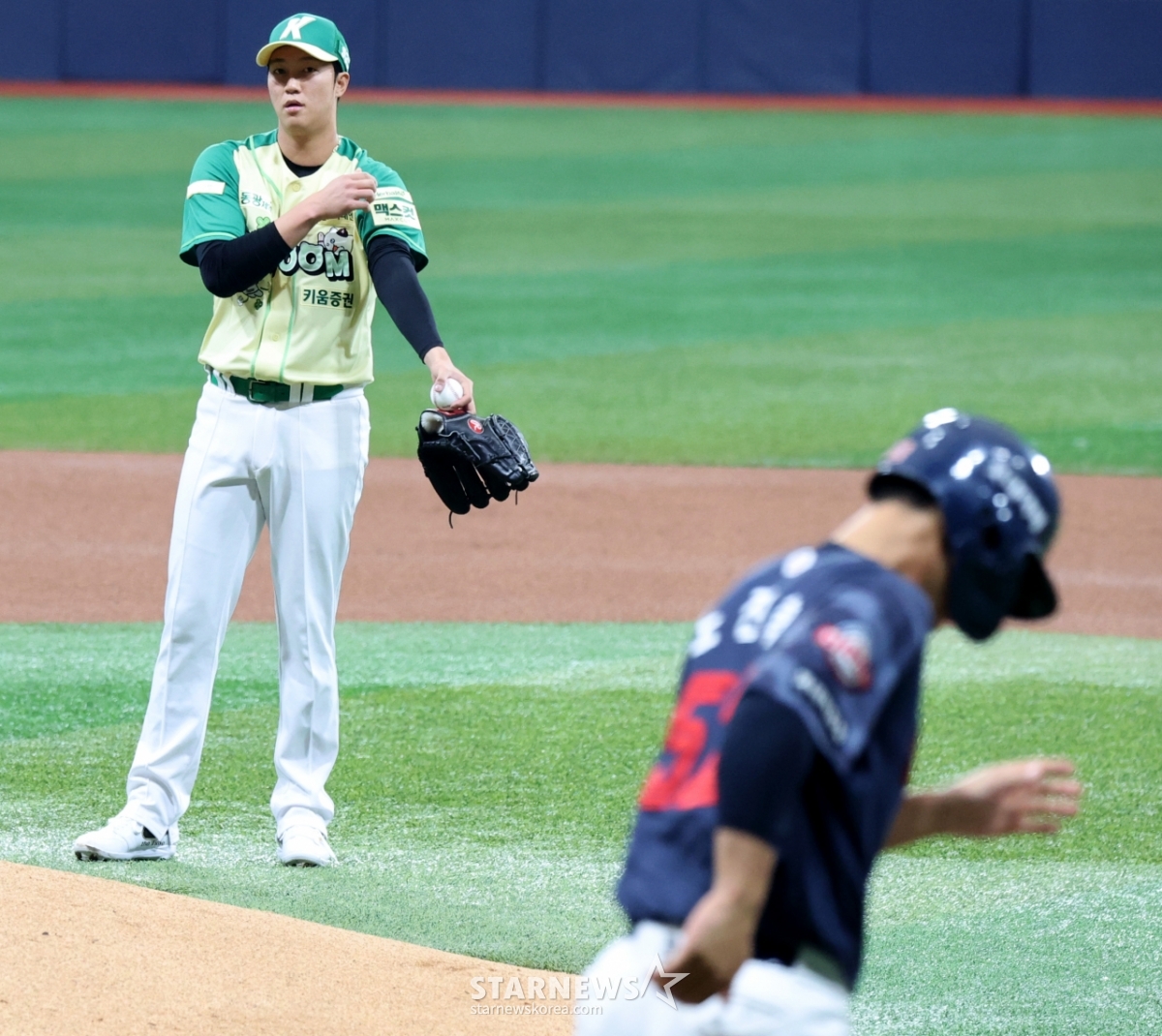 첫타자 황성민은 내야땅볼로 처리한 안우진