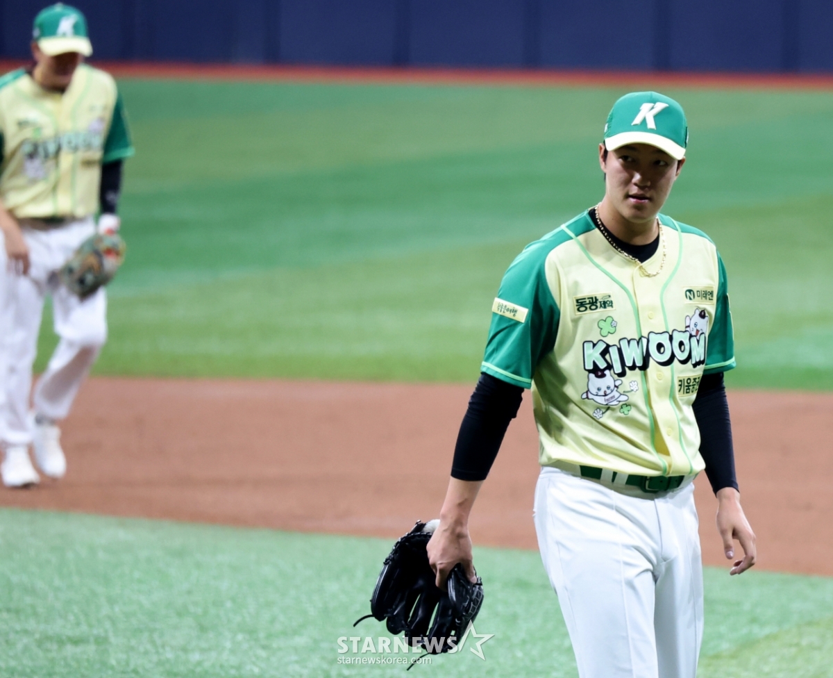 무실점으로 이닝을 마무리하며 더그아웃으로 향하는 안우진