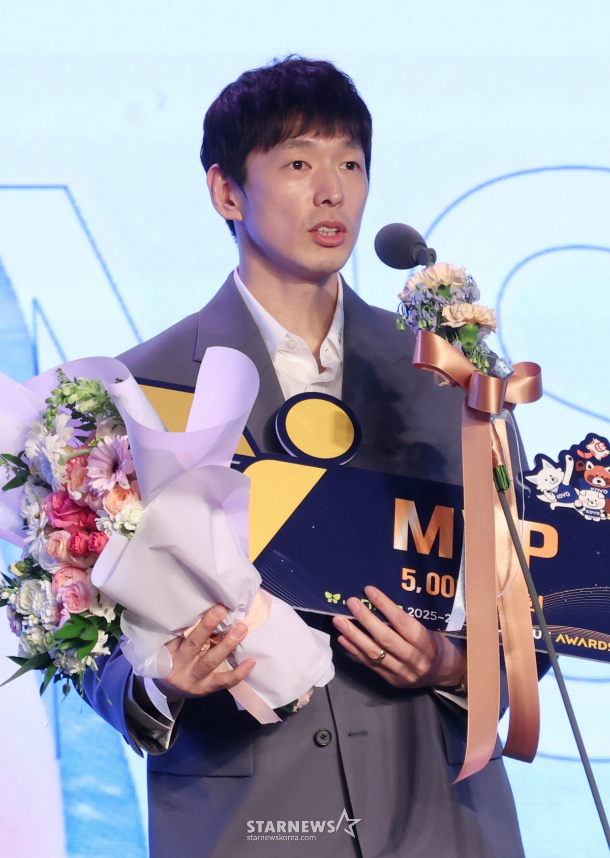 스포츠일반[포토] MVP 한선수 '노장의 힘'발행 : 2026.04.13 ・ 17:31조회수 :광장동=김진경 대기자진에어 2025~2026 V-리그 시상식이 13일 서울 광진구 그랜드 워커힐 호텔 비스타홀에서 열렸다.한선수(대한항공)가 MVP 수상한 후 소감을 밝히고 있다<저작권자 © 스타뉴스, 무단전재 및 재배포 금지>브리핑추천 기사김진경 대기자기자홈좋아요스포츠-일반의 인기 급상승 뉴스스포츠-일반의 최신 뉴스AD