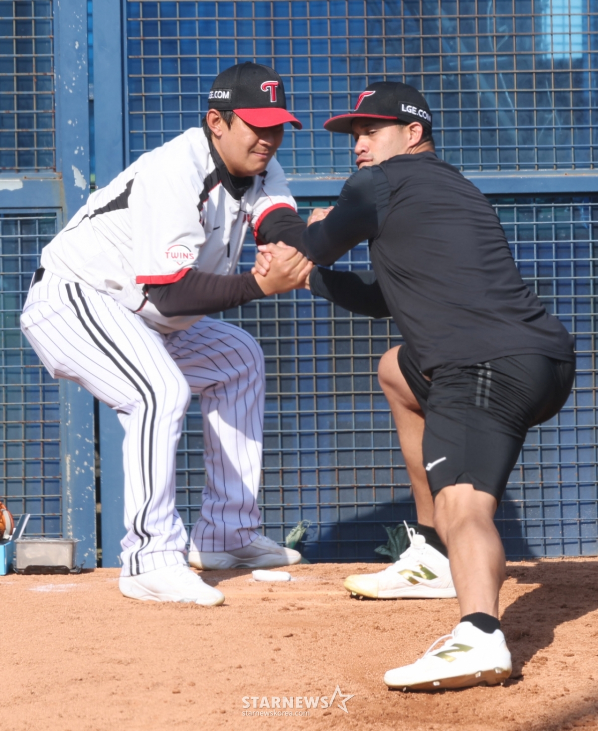 스포츠야구[포토] 치리노스, 허리 근력 강화는 이렇게발행 : 2026.04.14 ・ 16:15조회수 :잠실=김진경 대기자2026 신한 SOL KBO리그 LG 트윈스 대 롯데 자이언츠 경기가 14일 서울 잠실야구장에서 열렸다.LG 치리노스가 장진용 코치와 밸런스를 잡고 있다.<저작권자 © 스타뉴스, 무단전재 및 재배포 금지>브리핑추천 기사김진경 대기자기자홈좋아요스포츠-야구의 인기 급상승 뉴스스포츠-야구의 최신 뉴스AD