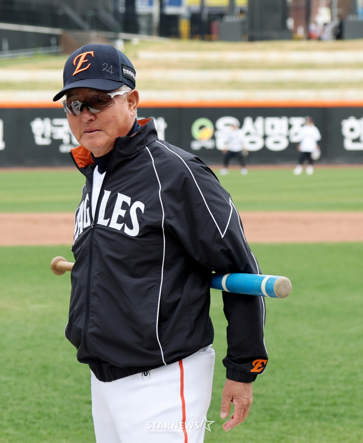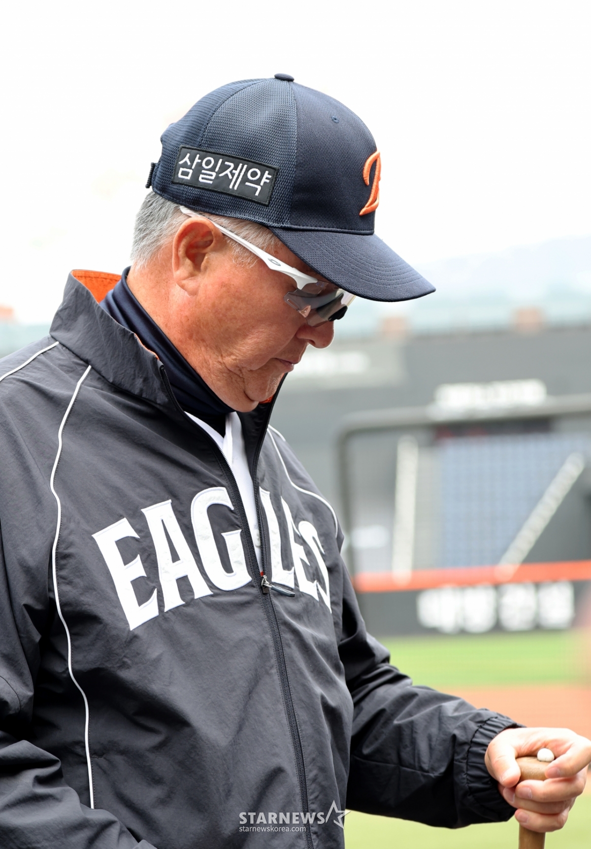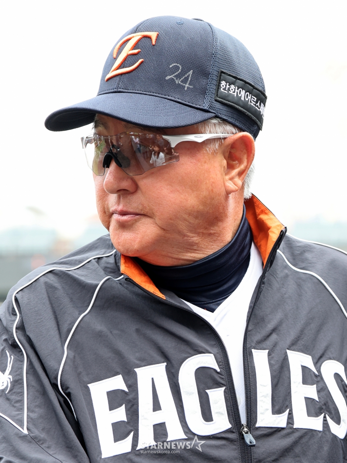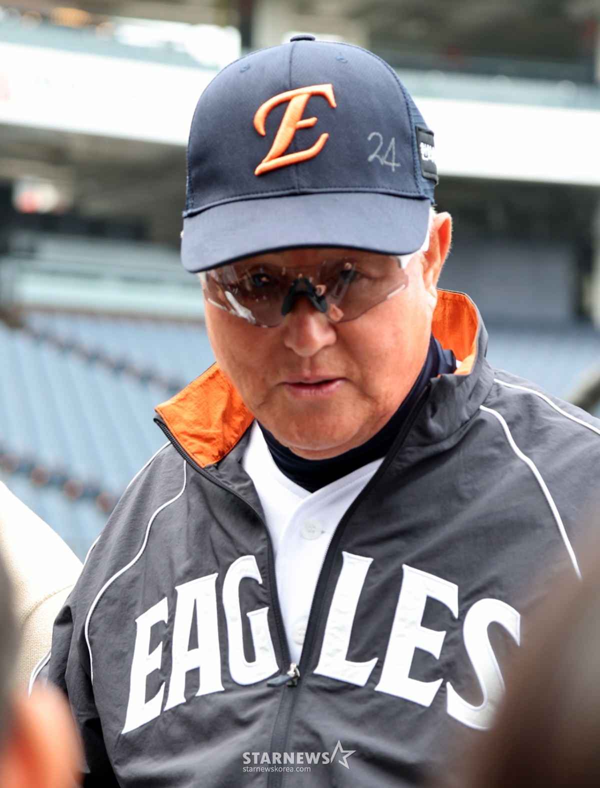 한화 김경문 감독이 14일 대전한화생명볼파크에서 열리는 2026KBO리그 한화이글스와 삼성라이온즈 경기에 앞서 기자들과 이야기를 나누고 있다.