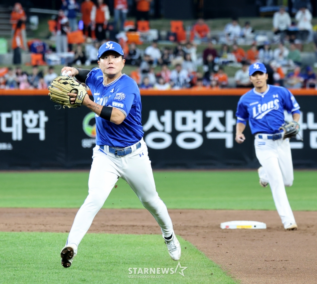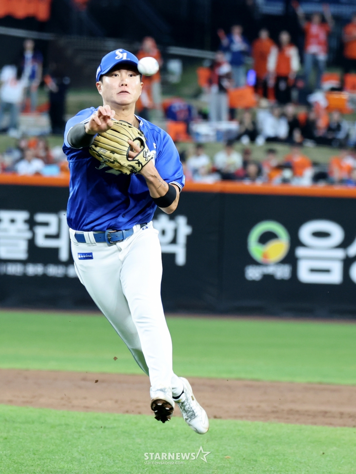 삼성 2루수 류지혁이 14일 대전한화생명볼파크에서 열린 2026KBO리그 한화이글스와 삼성라이온즈 경기 2회말에 참여했다. 류지혁은 이도윤의 땅볼을 잡았다. 그는 잡은 공을 1루로 송구했다.