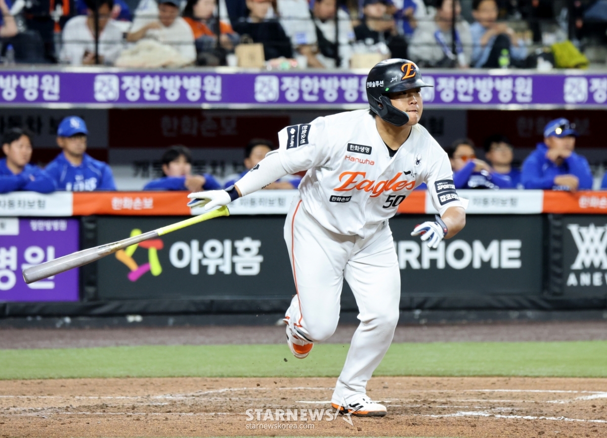 한화의 4번 타자 강백호가 14일 대전한화생명볼파크에서 열린 2026KBO리그 한화이글스와 삼성라이온즈 경기에서 활약했다. 그는 3회말 2사 1,2루 상황에서 적시타를 터트렸다. 이 적시타로 한화는 2-0으로 앞서갔고, 강백호는 자축했다.