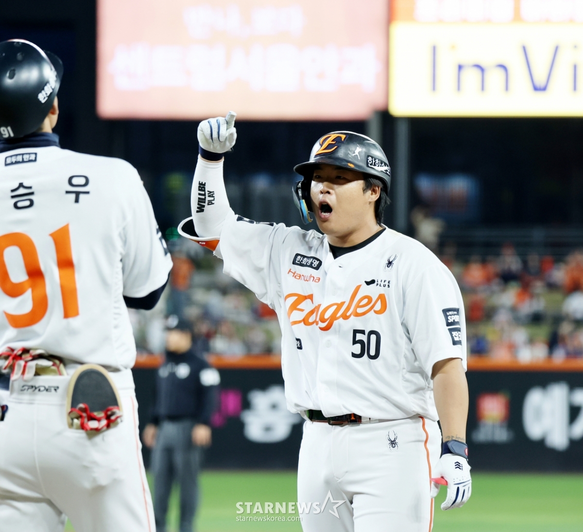 스포츠야구[포토] '3회말 적시타 환호' 강백호발행 : 2026.04.14 ・ 19:42조회수 :대전=강영조 선임기자한화 4번타자 강백호가 14일 대전한화생명볼파크에서 열리는 2026KBO리그 한화이글스와 삼성라이온즈 경기 3회말 2사 1,2루에서 적시타를 터트린 후 자축하고 있다. 2026.04.14.<저작권자 © 스타뉴스, 무단전재 및 재배포 금지>브리핑추천 기사강영조 선임기자기자홈좋아요스포츠-야구의 인기 급상승 뉴스스포츠-야구의 최신 뉴스AD