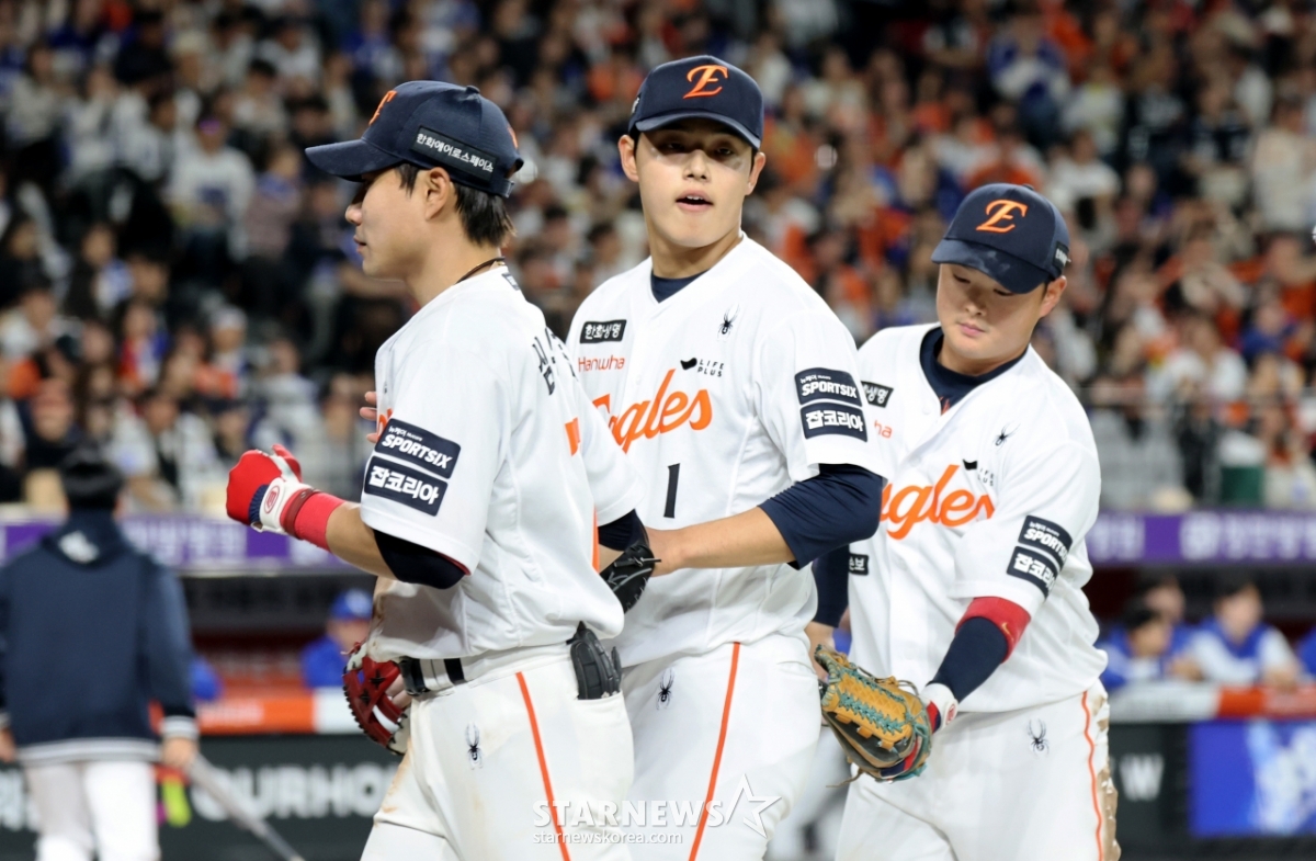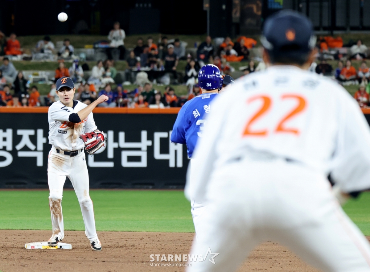 한화 유격수 심우준이 14일 대전한화생명볼파크에서 열린 2026 KBO리그 한화이글스와 삼성라이온즈 경기 5회초 1사 만루 위기 상황에서 디아즈의 땅볼을 잡았다. 심우준은 이 땅볼을 병살처리하며 위기를 마무리했다. 이로써 한화는 5회초 만루 위기를 넘겼다.