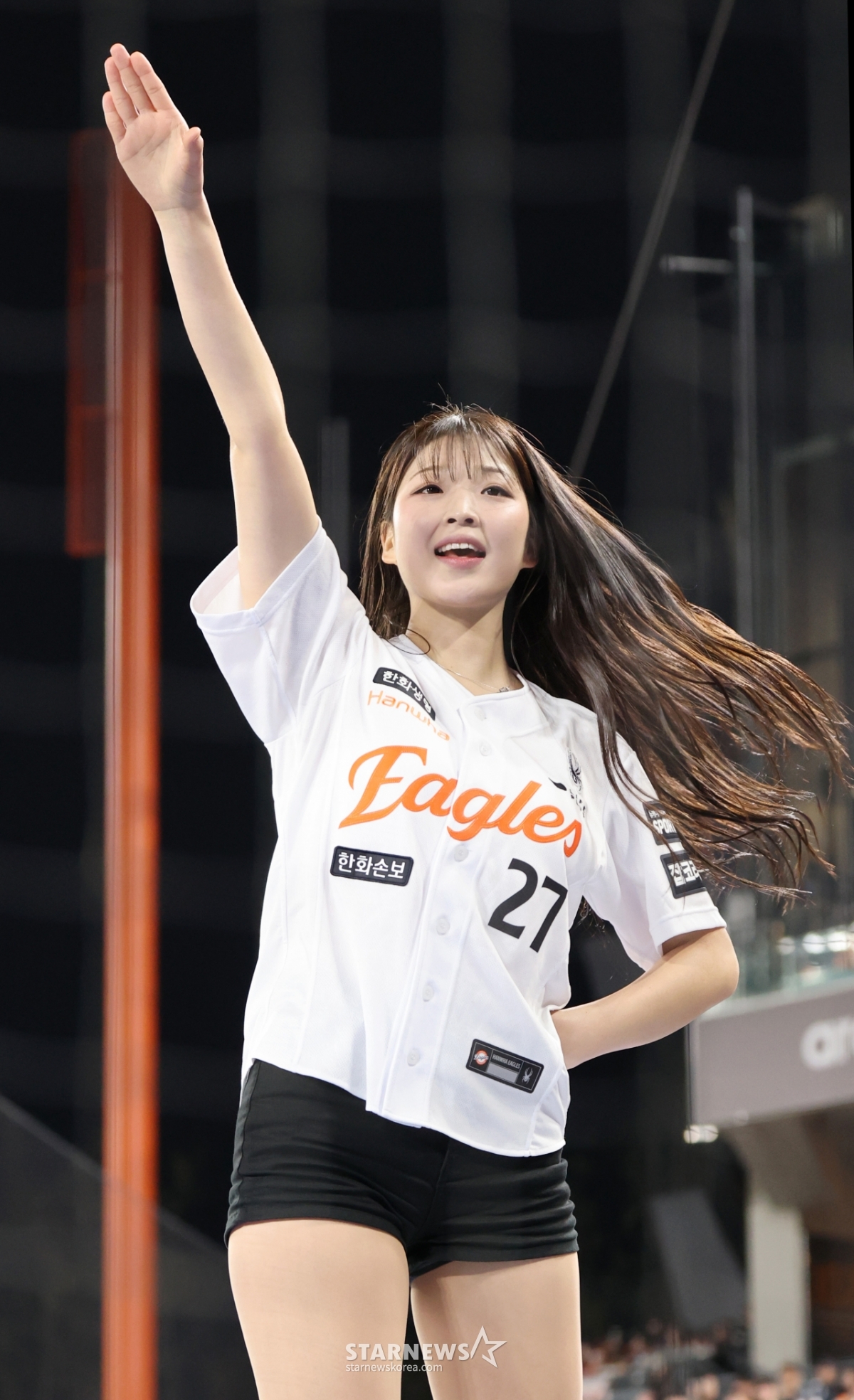 한화 치어리더 최석화가 14일 대전한화생명볼파크에서 열리는 2026KBO리그 한화이글스와 삼성라이온즈 경기에서 열띤 응원을 펼치고 있다. . 2026.04.14.
