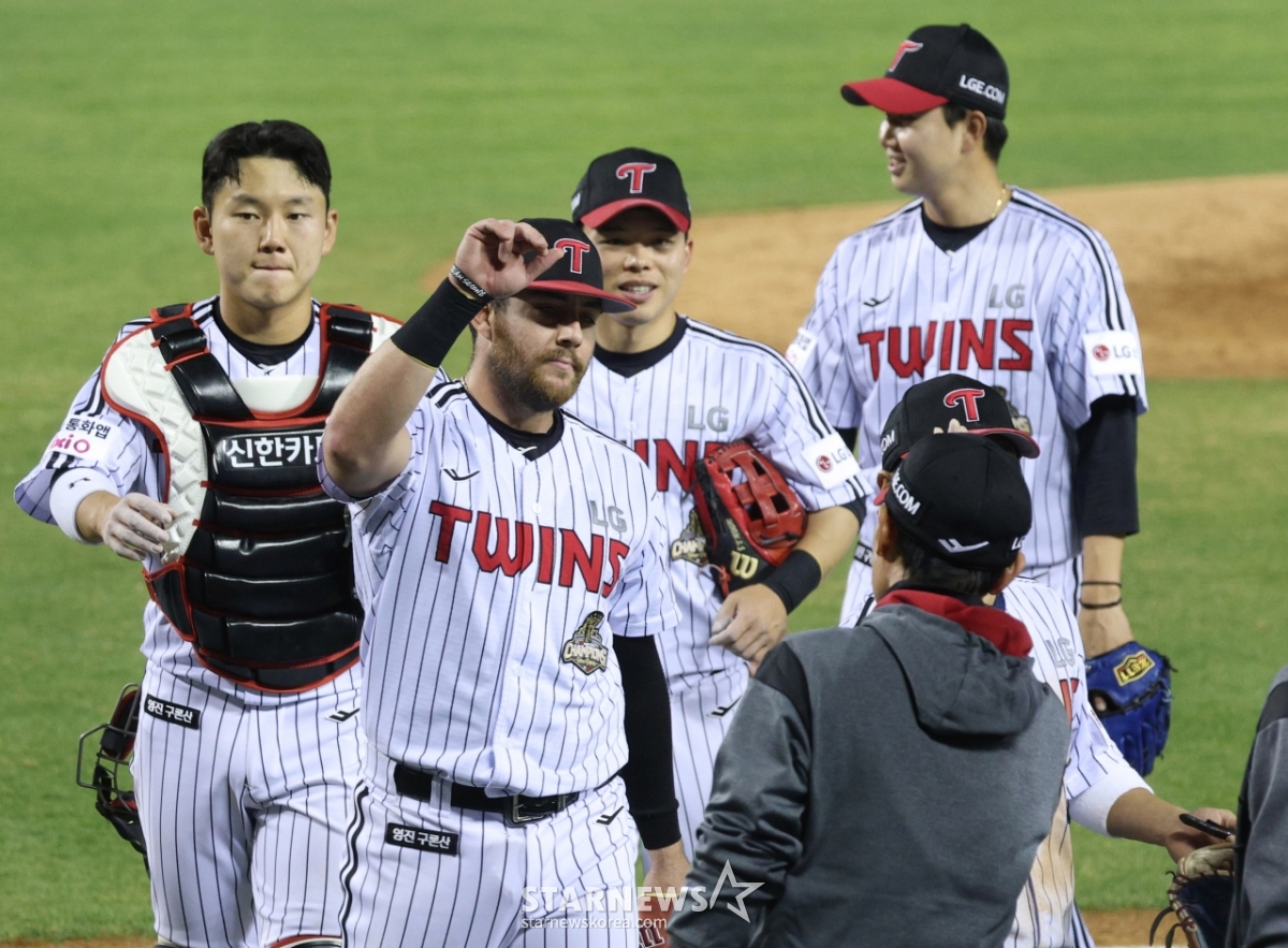 2026 신한 SOL KBO리그 LG 트윈스와 롯데 자이언츠의 경기가 14일 서울 잠실야구장에서 열렸다. LG 트윈스는 롯데에 2-1로 승리했다. 이 승리로 LG는 8연승과 동시에 10승에 선착하며 염경엽 감독과 기쁨을 나눴다.