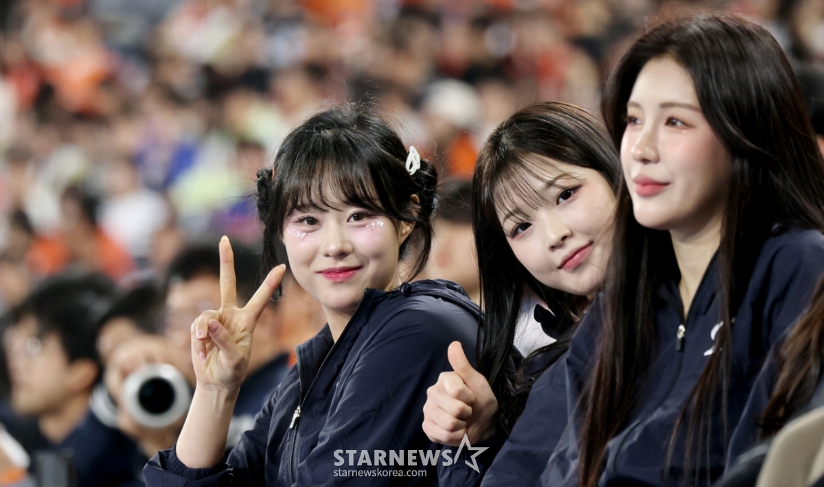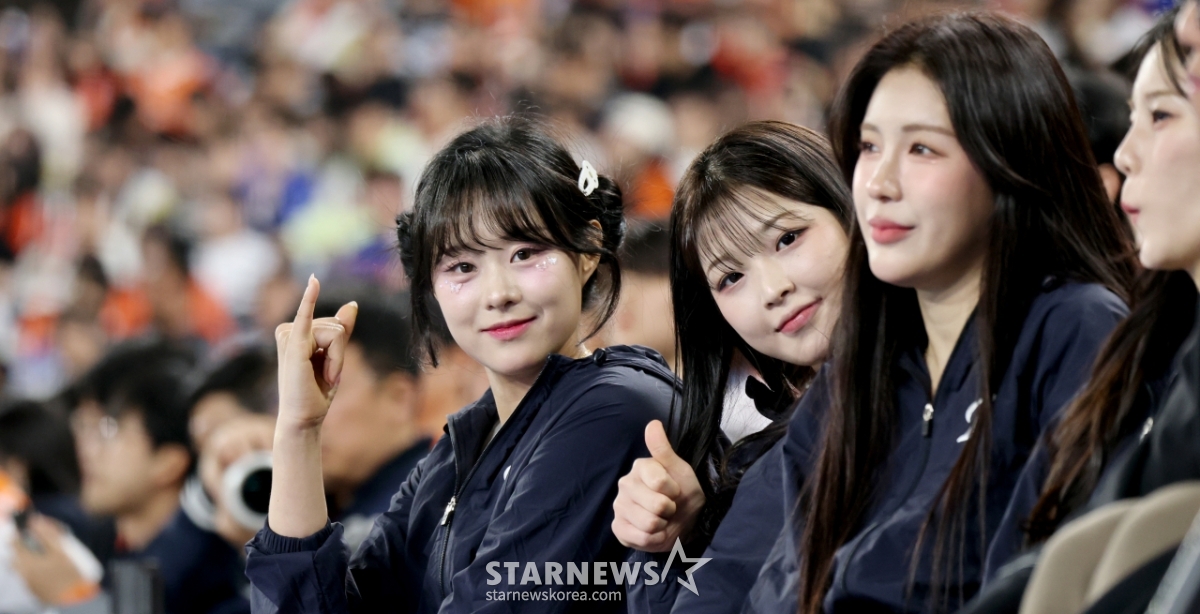 한화 치어리더 김연정, 이호은, 최석화가 14일 대전한화생명볼파크에서 열린 2026KBO리그 한화이글스와 삼성라이온즈 경기를 지켜봤다. 이들은 9회초 동점상황을 주시했다. 경기는 2026년 4월 14일에 진행됐다.