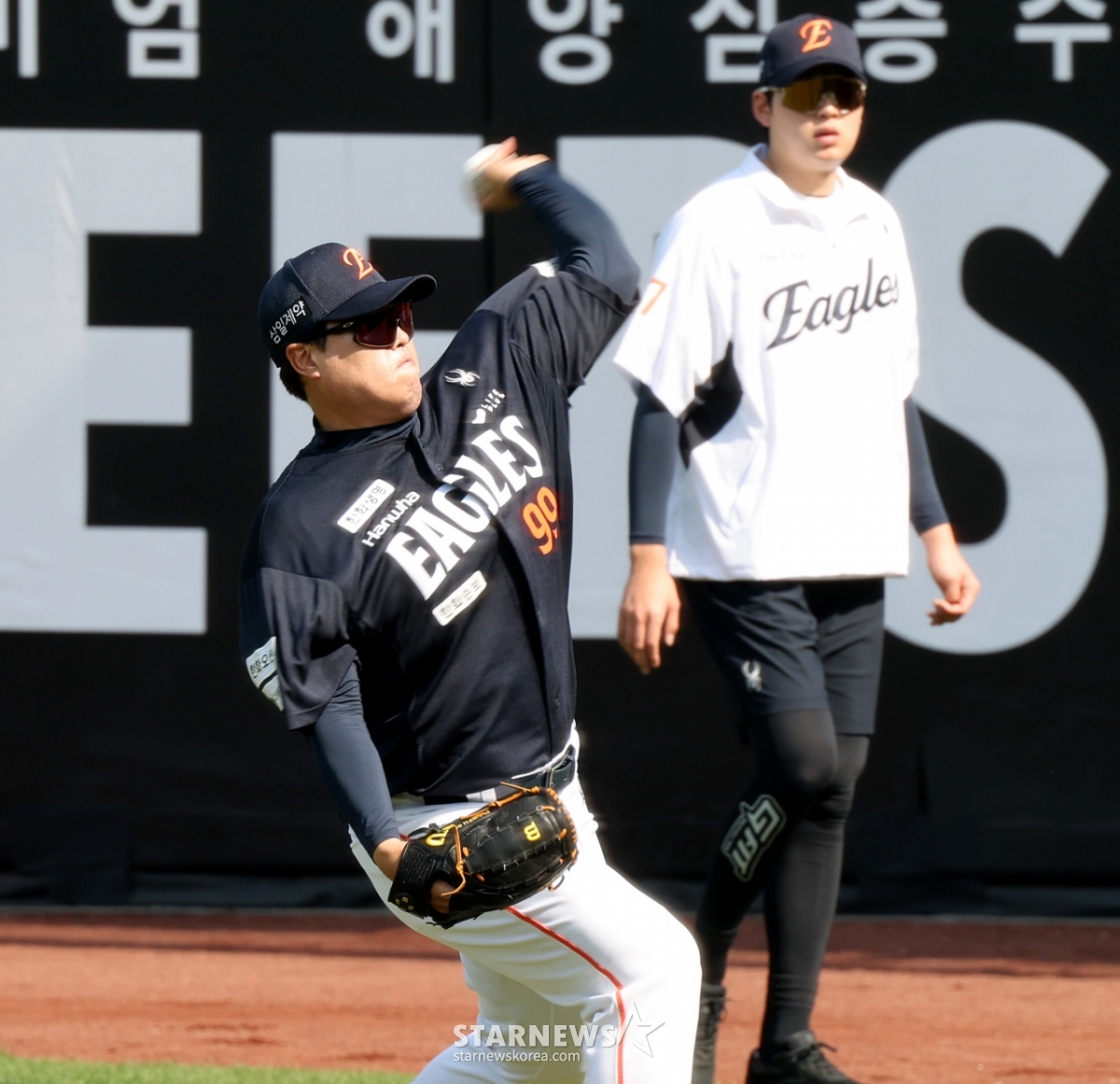 한화 류현진이 15일 대전한화생명볼파크에서 열리는 2026KBO리그 한화이글스와 삼성라이온즈 경기를 앞두고 몸을 풀었다. 류현진은 피칭을 하며 출격 준비를 했다. 이 경기는 2026년 4월 15일에 진행되었다.