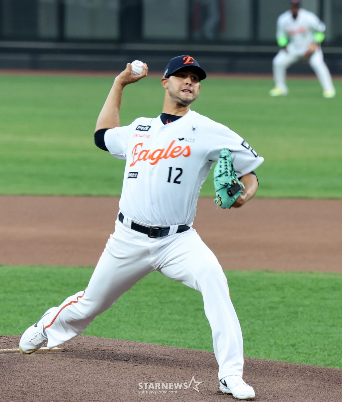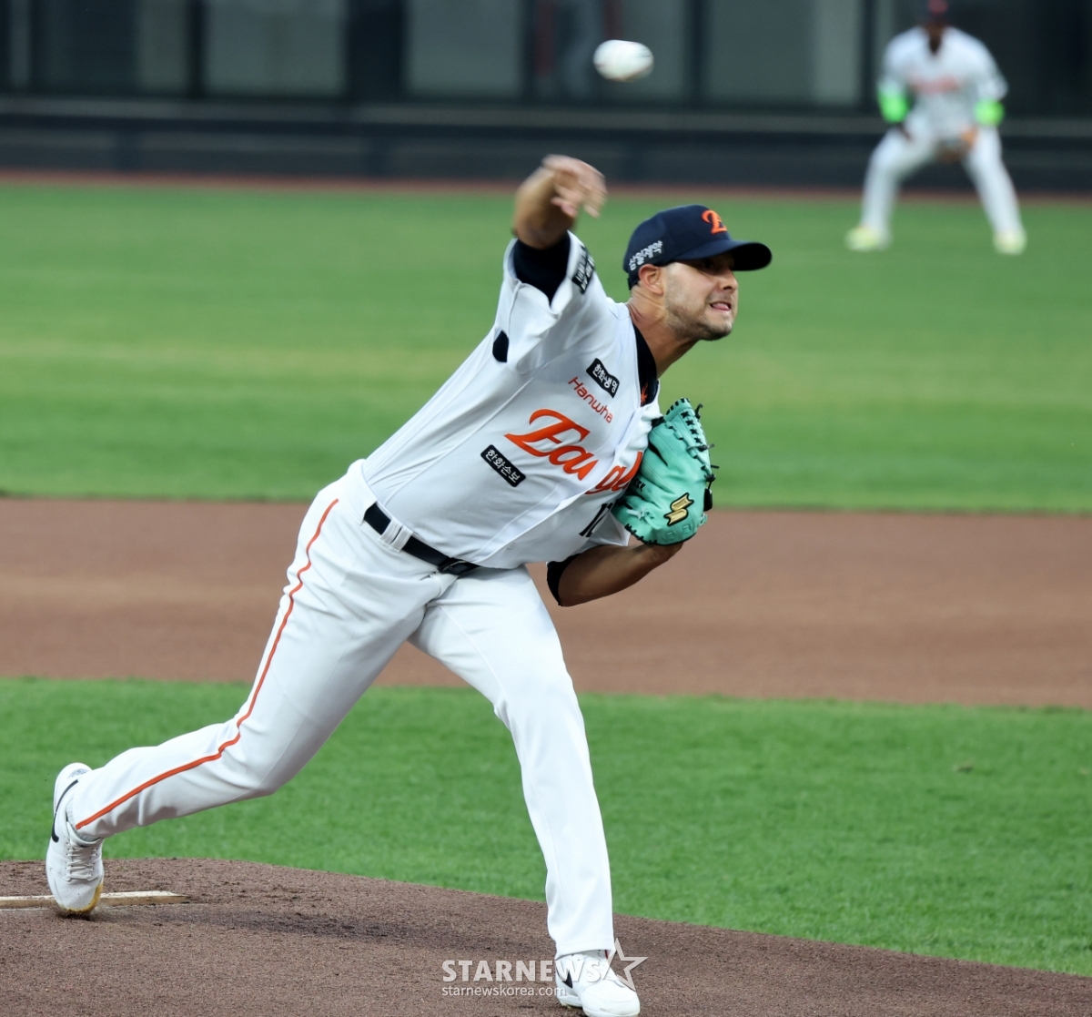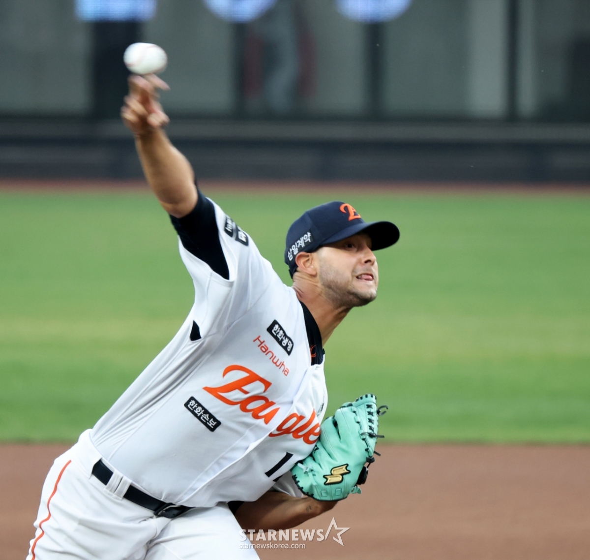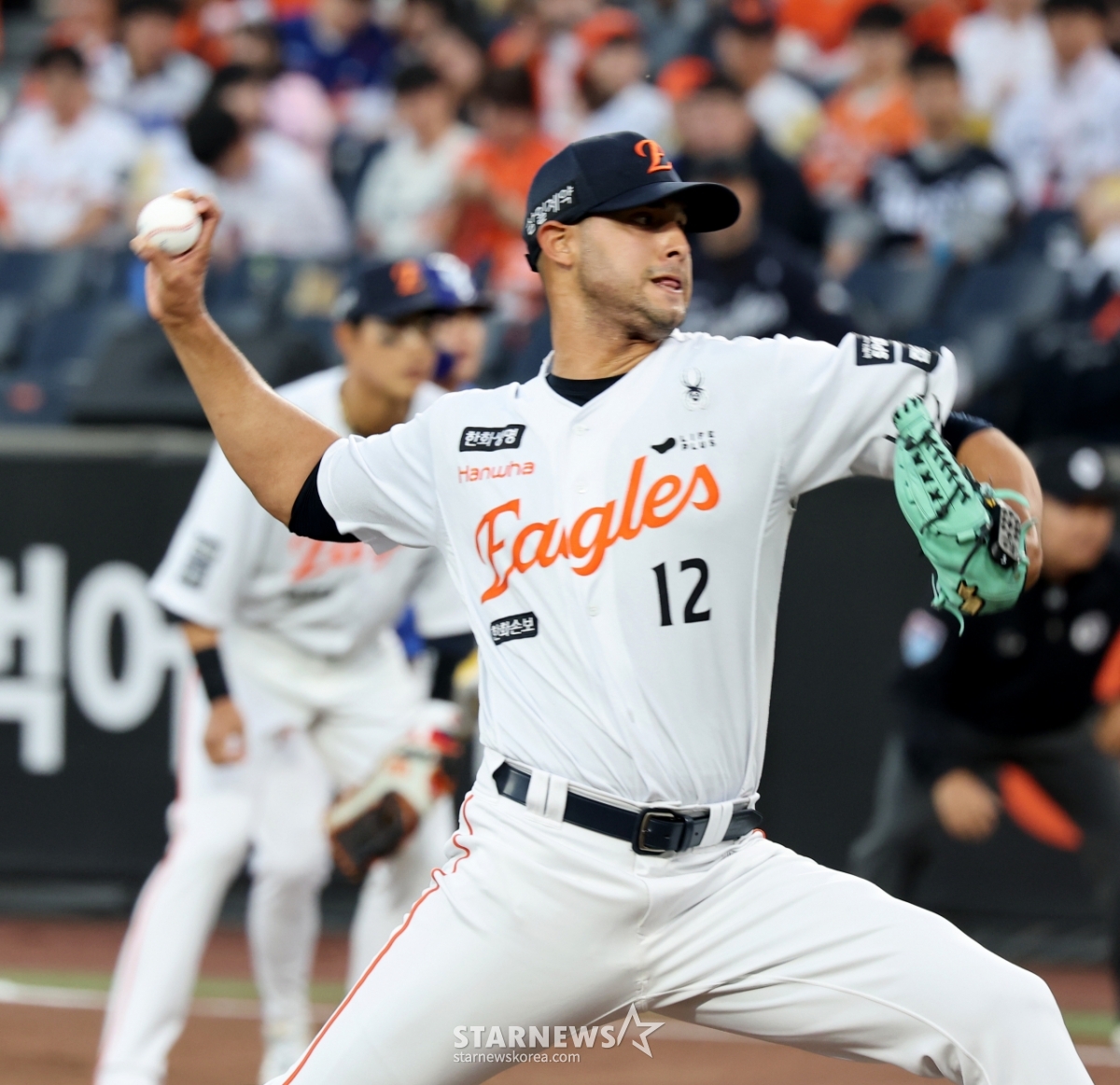 한화 선발투수 에르난데스가 15일 대전한화생명볼파크에서 열리는 2026KBO리그 한화이글스와 삼성라이온즈 경기 1회초 타자일순하고도 이닝을 마무리하지 못하고 강판되고 있다. 황준서가 긴급 투입됐다. 2026.04.15.