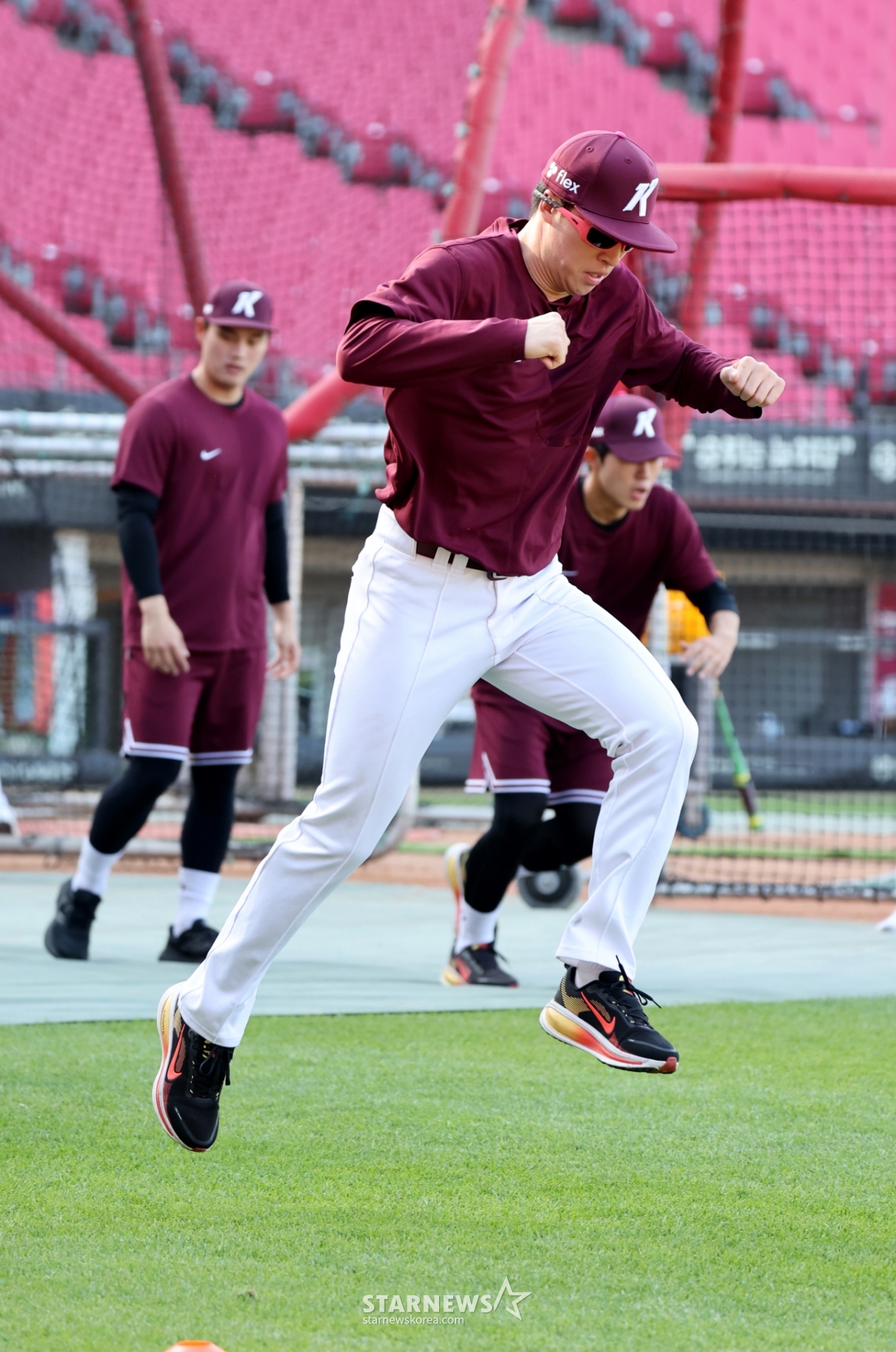 키움 복동이 선발투수 배동현이 16일 광주KIA챔피언스필드에서 열리는 2026KBO리그 기아타이거즈와 키움히어로즈의 경기를 앞두고 몸을 풀고 있다. 2026.04.16.