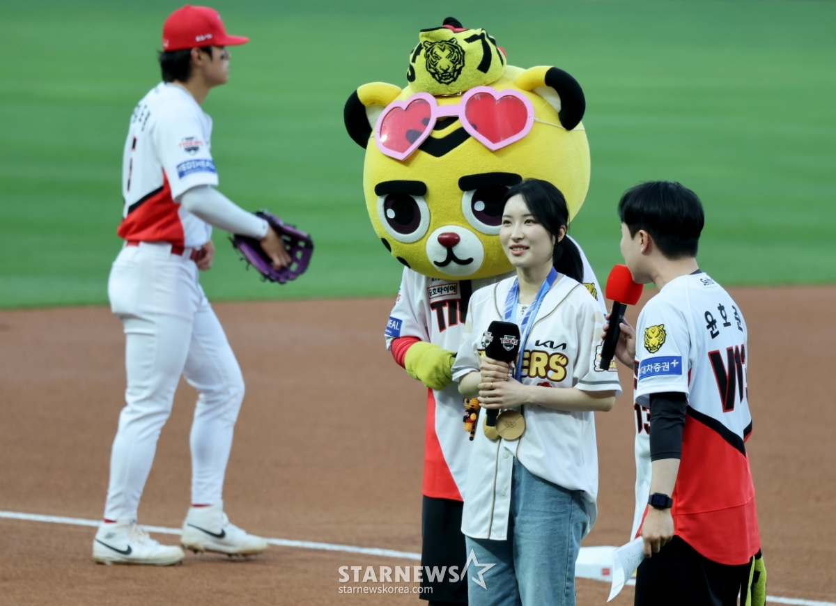 동계올림픽 쇼트트랙 금메달리스트 김길리가 16일 광주KIA챔피언스필드에서 열린 2026 KBO리그 기아타이거즈와 키움히어로즈 경기에서 시구를 했다. 김길리는 김도영의 팬이라고 밝혔다. 그녀는 자신의 금메달 기운으로 기아의 우승을 빌었다.