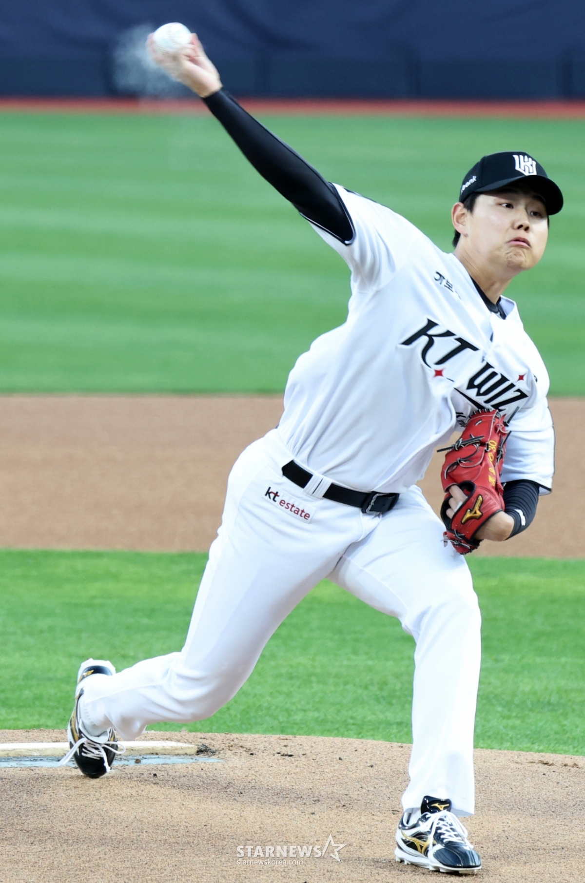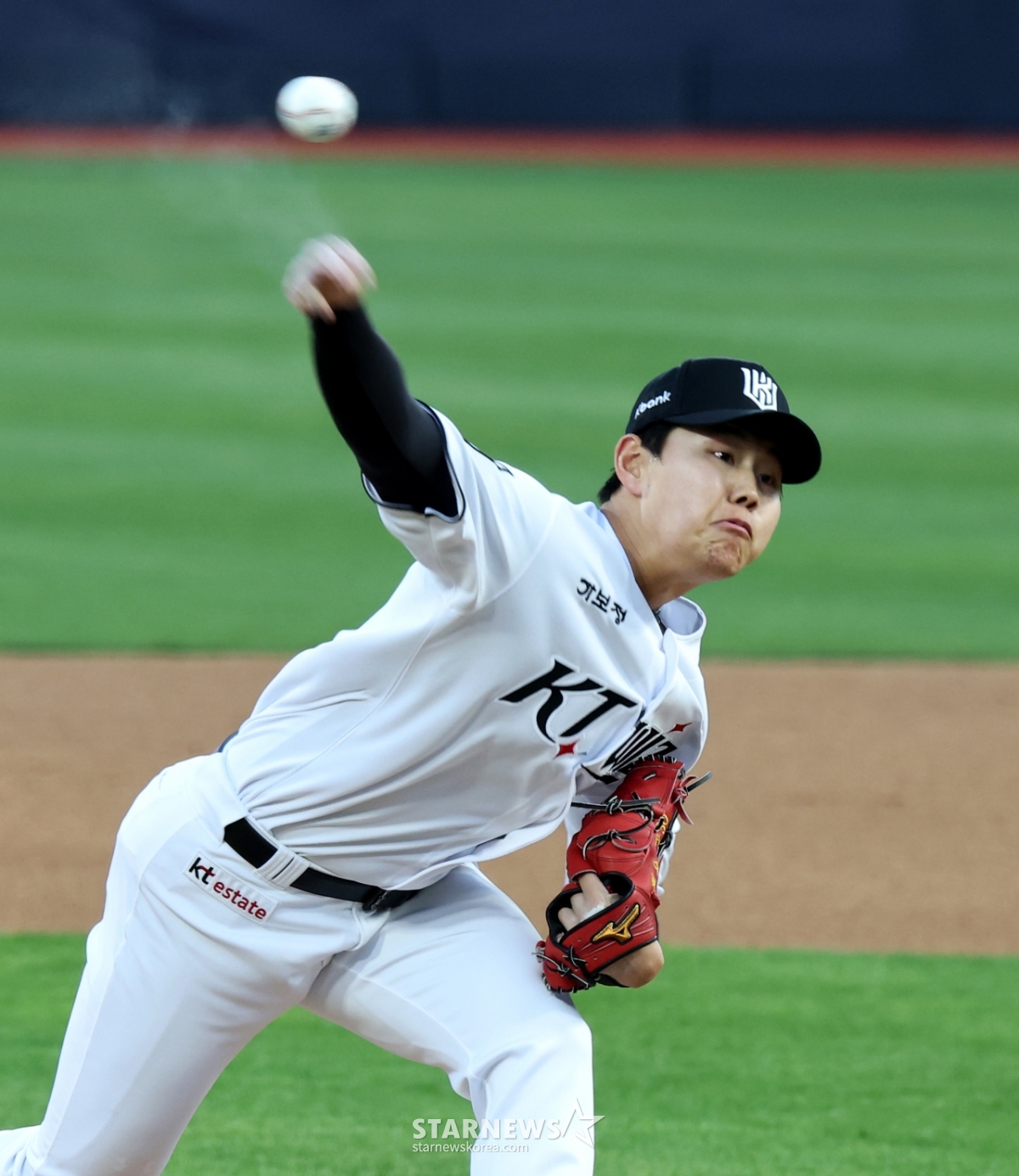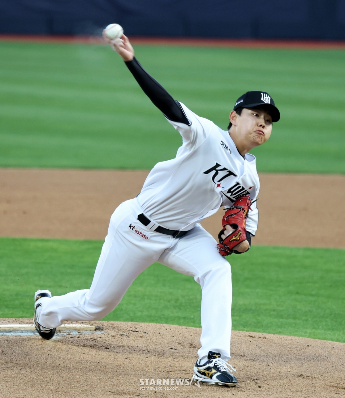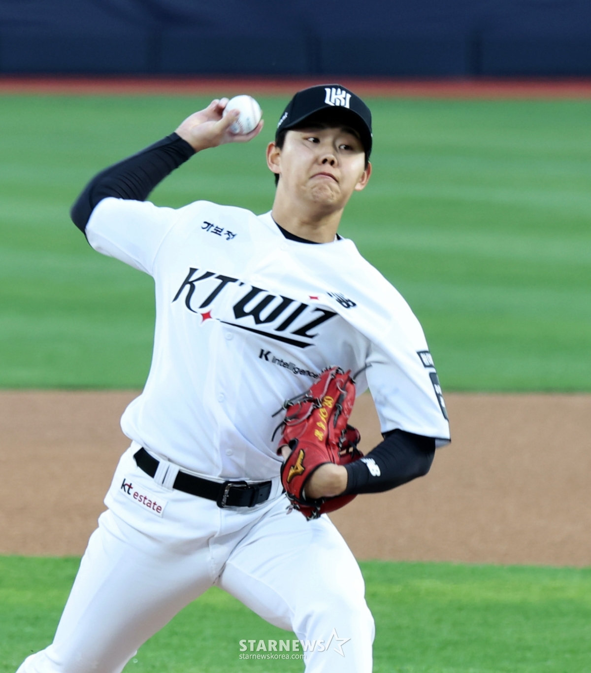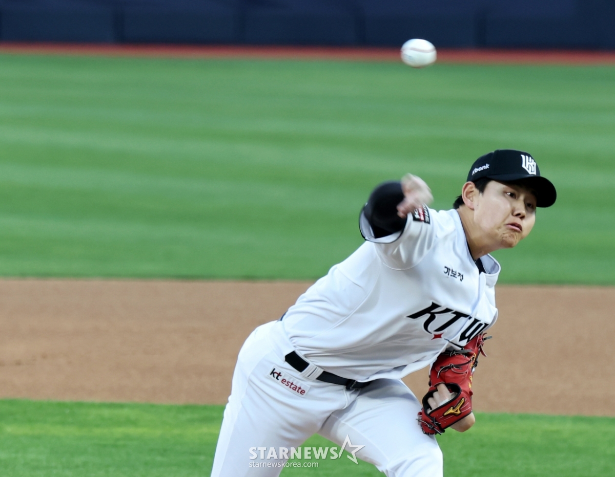 KT 우완선발 소형준이 17일 수원KT위즈파크에서 열린 2026KBO리그 KT위즈와 키움히어로즈의 경기에서 역투하고 있다.