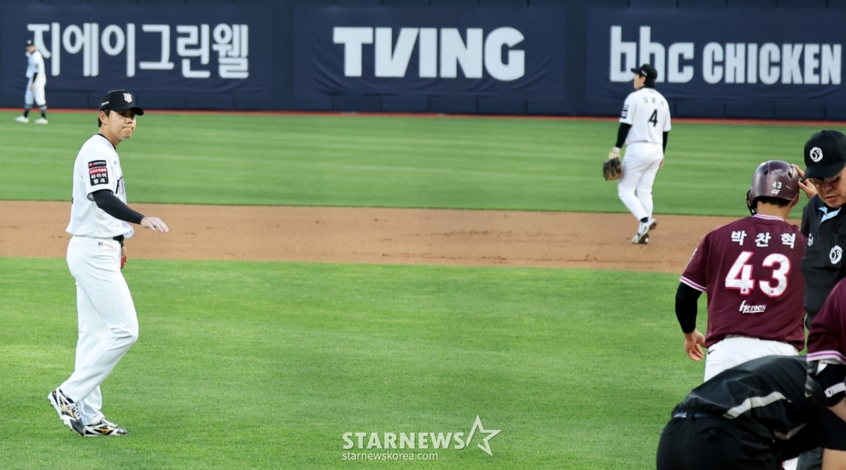 박찬혁은 몸에맞는볼로 내보내며 미안함을 표시하는 소형준.