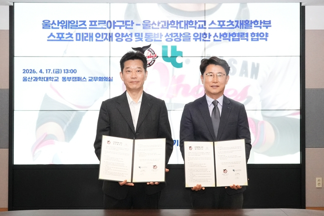 KBO 최초의 시민구단 울산웨일즈와 울산과학대학교 스포츠재활학부가 지역 스포츠 산업 발전과 전문 인재 양성을 위해 힘을 모으기로 했다.