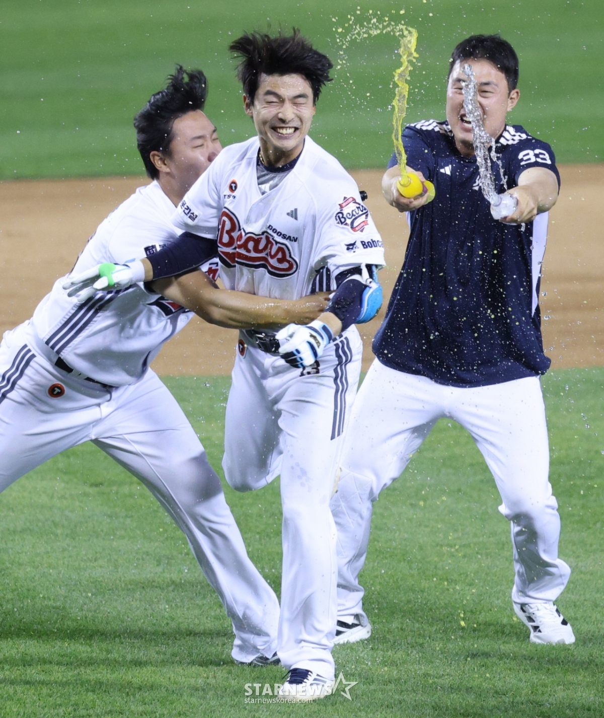 두산은 곧바로 양의지의 추격 솔로포와 정수빈의 적시타로 4-4 동점을 만들었다.