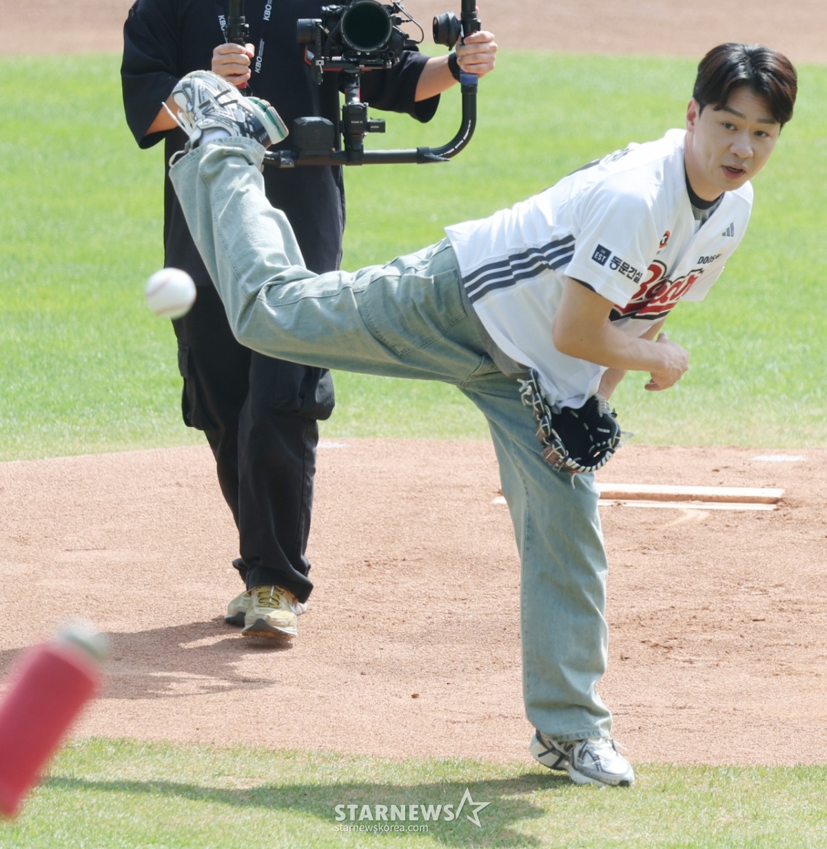 정상훈은 지난 2017년 플레이오프(PO)에서 두산 유니폼을 입고 시구했던 두산 찐팬이다.
