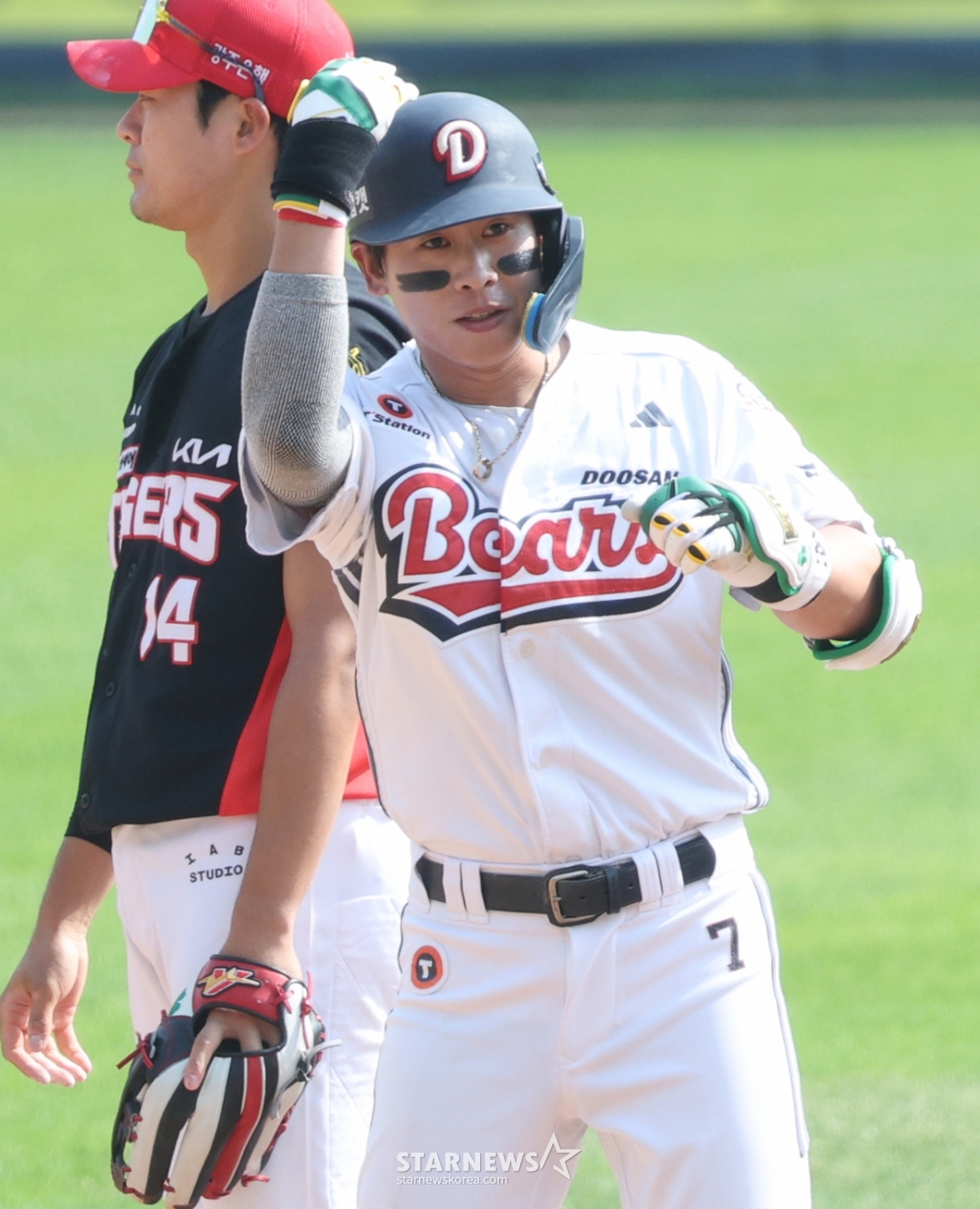 스포츠야구[포토] 박찬호 '곰들이여 일어나라'발행 : 2026.04.19 ・ 15:40조회수 :잠실=김진경 대기자2026 신한 SOL KBO리그 두산 베어스 대 KIA 타이거즈 경기가 19일 서울 잠실야구장에서 열렸다.두산 박찬호가 5회말 무사에서 좌월 2루타를 날리고 출루한 후 세리머니를 하고 있다.<저작권자 © 스타뉴스, 무단전재 및 재배포 금지>브리핑추천 기사김진경 대기자기자홈좋아요스포츠-야구의 인기 급상승 뉴스스포츠-야구의 최신 뉴스AD