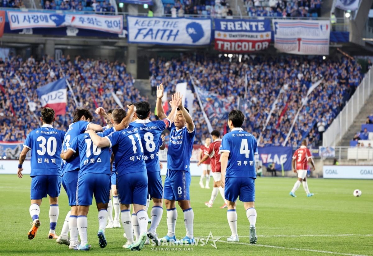 스포츠축구[포토] '전설들의 축하' 수원삼성 레전드 산토스발행 : 2026.04.19 ・ 19:29조회수 :수원=강영조 선임기자수원삼성 레전드 산토스가 19일 수원 월드컵경기장에서 열리는OGFC와 수원삼성의 레전드 매치에서 선제골을 성공시킨후동료들과 기쁨을 만끽하고 있다. 2026.04.19.<저작권자 © 스타뉴스, 무단전재 및 재배포 금지>브리핑추천 기사강영조 선임기자기자홈좋아요스포츠-축구의 인기 급상승 뉴스스포츠-축구의 최신 뉴스AD