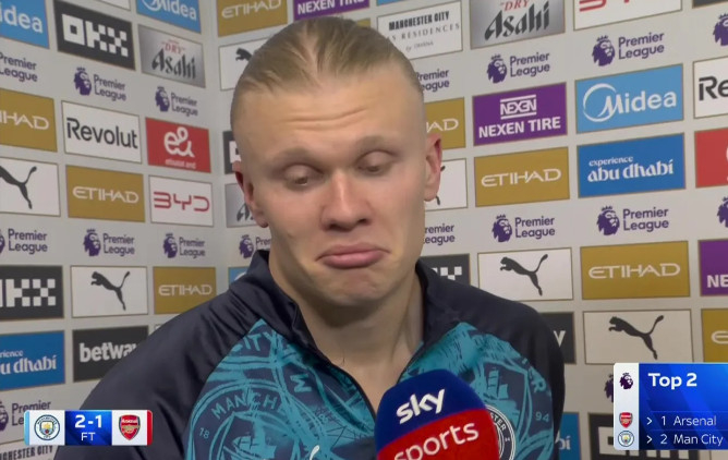 승리에 들뜬 홀란은 경기 후 인터뷰에서 거친 말을 쏟아내 관심을 모았다. 영국 '더선'은 "홀란이 맨시티전 직후 진행된 인터뷰에서 리포터의 제지에도 불구하고 본인의 언어 선택에 대해 사과하기를 거부했다"고 전했다.