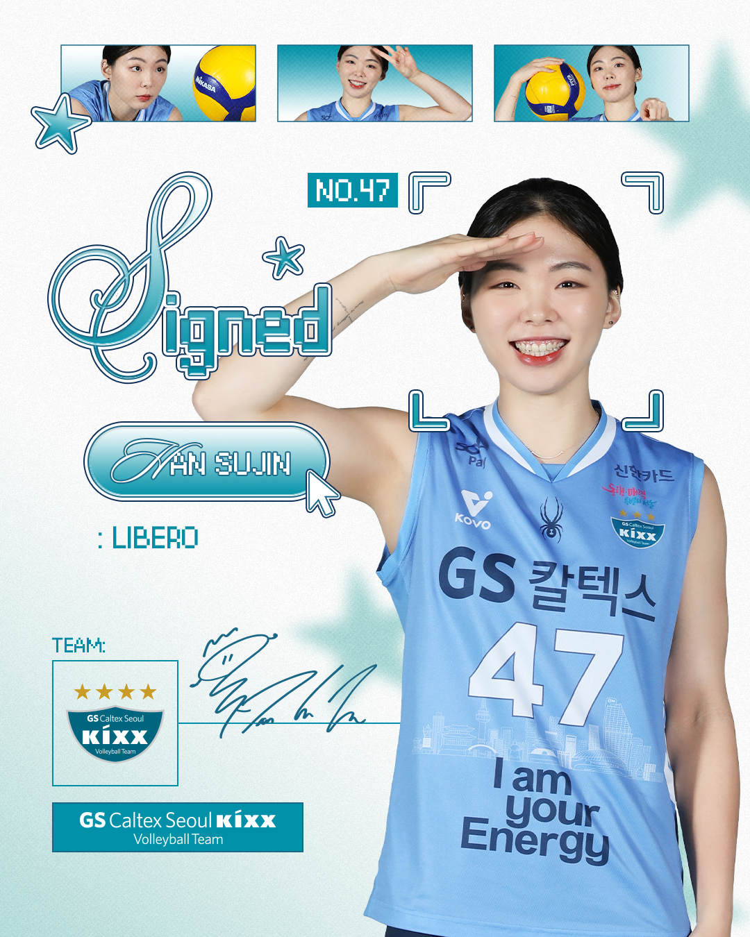 GS칼텍스 구단은 21일 "2025-2026시즌 기적 같은 업셋 우승을 일궈내며 수비라인의 핵심 역할을 수행했던 한수진과 자유계약선수(FA) 계약을 체결했다"고 발표했다. 계약 기간은 3년, 연간 보수 총액은 2억 5000만원(연봉 1억 5000만원·옵션 1억원)이다.