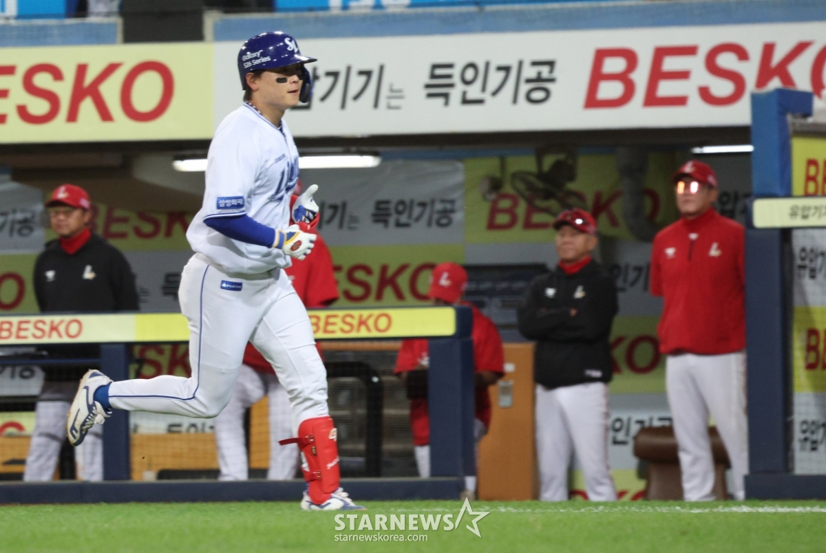 스포츠야구[포토] 역전포 박승규의 귀환발행 : 2026.04.21 ・ 19:38조회수 :대구=김진경 대기자2026 신한 SOL KBO리그 삼성 라이온즈 대 SSG 랜더스 경기가 21일 대구 삼성라이온즈파크에서 열렸다.삼성 박승규가 3회말 무사에서 역전 좌월 1점 홈런을 날리고 홈인하고 있다.<저작권자 © 스타뉴스, 무단전재 및 재배포 금지>브리핑추천 기사김진경 대기자기자홈좋아요스포츠-야구의 인기 급상승 뉴스스포츠-야구의 최신 뉴스AD