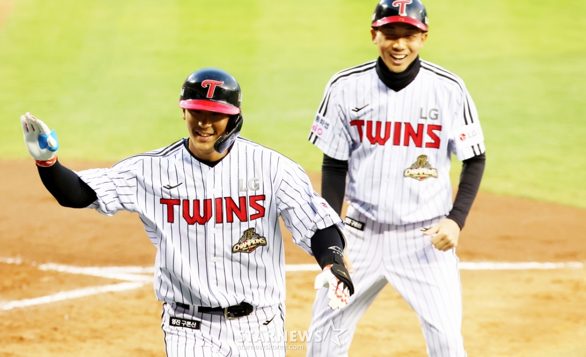 스포츠야구[포토] '기선제압 투런홈런' 송찬의발행 : 2026.04.22 ・ 19:09조회수 :잠실=강영조 선임기자LG 8번 송찬의가 22일 잠실야구장에서 열리는 2026KBO리그 LG트윈스와 한화이글스 경기 2회말 2사 1루에서 왕옌청을 상대로 선제 투런홈런을 터트린 후 홈인하고 있다. 2026.04.22.<저작권자 © 스타뉴스, 무단전재 및 재배포 금지>브리핑추천 기사강영조 선임기자기자홈좋아요스포츠-야구의 인기 급상승 뉴스스포츠-야구의 최신 뉴스AD