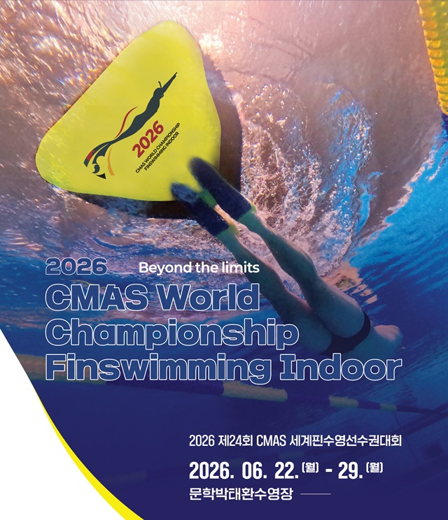 '2026 제24회 CMAS 세계핀수영선수권대회'는 오는 6월 22일부터 29일까지 인천 문학박태환수영장에서 개최된다.