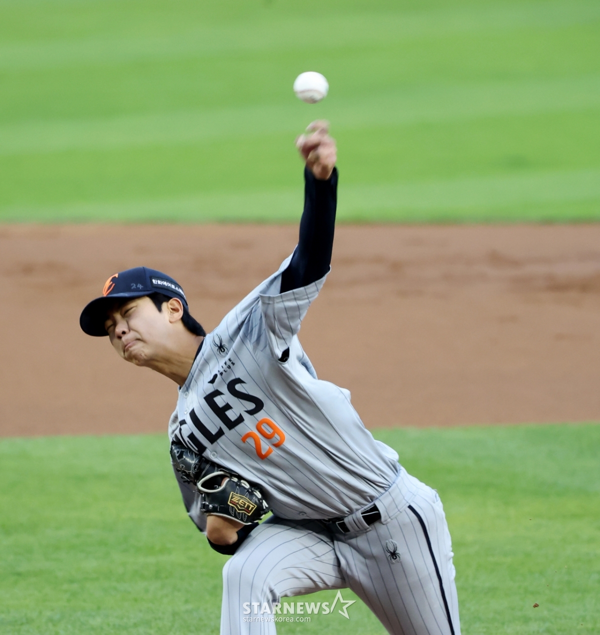 한화 선발투수 좌완 황준서가 23일 잠실야구장에서 열린 2026 KBO리그 LG트윈스와 한화이글스 경기에서 역투했다. 황준서는 이 경기에서 선발투수로 등판했다. 그는 LG전에서 연패를 끊기 위해 노력했다.