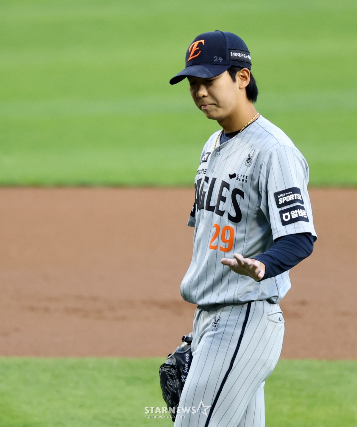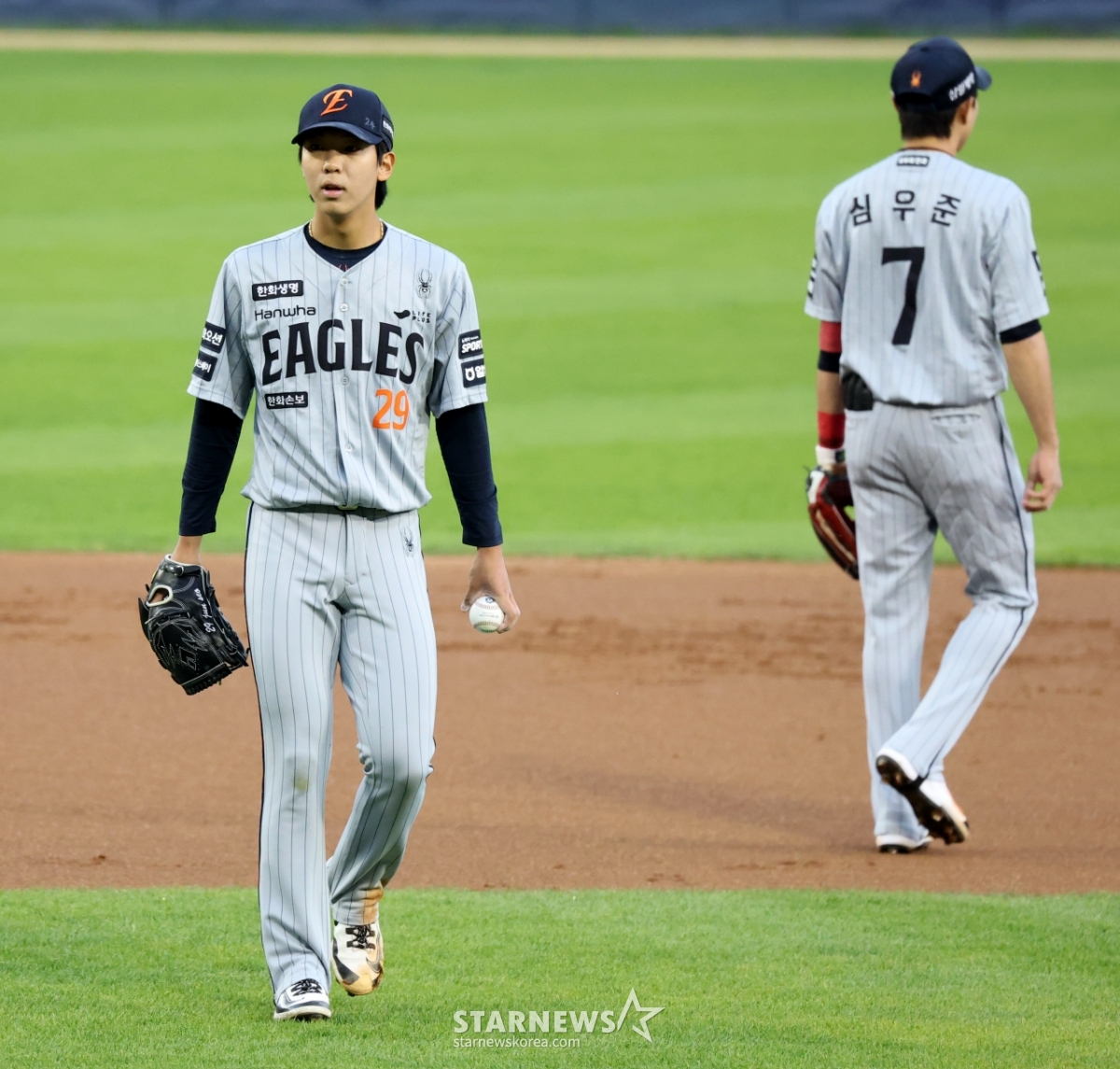 한화 선발투수 황준서가 23일 잠실야구장에서 열리는 2026 KBO리그 LG트윈스와 한화이글스 경기 3회말 2사 1루에서 김서현으로 교체되고 있다. 2026.04.23.