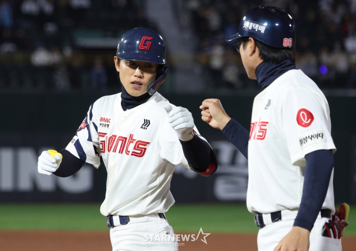 스포츠야구[포토] 전민재 '1타점 추가요'발행 : 2026.04.23 ・ 20:00조회수 :부산=김진경 대기자2026 신한 SOL KBO리그 롯데 자이언츠 대 두산 베어스 경기가 23일 부산 사직야구장에서 열렸다.롯데 전민재가 4회말 1사 2,3루에서 1타점 적시타를 날리고 출루한 후 이현곤 코치의 환영을 받고 있다.<저작권자 © 스타뉴스, 무단전재 및 재배포 금지>브리핑추천 기사김진경 대기자기자홈좋아요스포츠-야구의 인기 급상승 뉴스스포츠-야구의 최신 뉴스AD