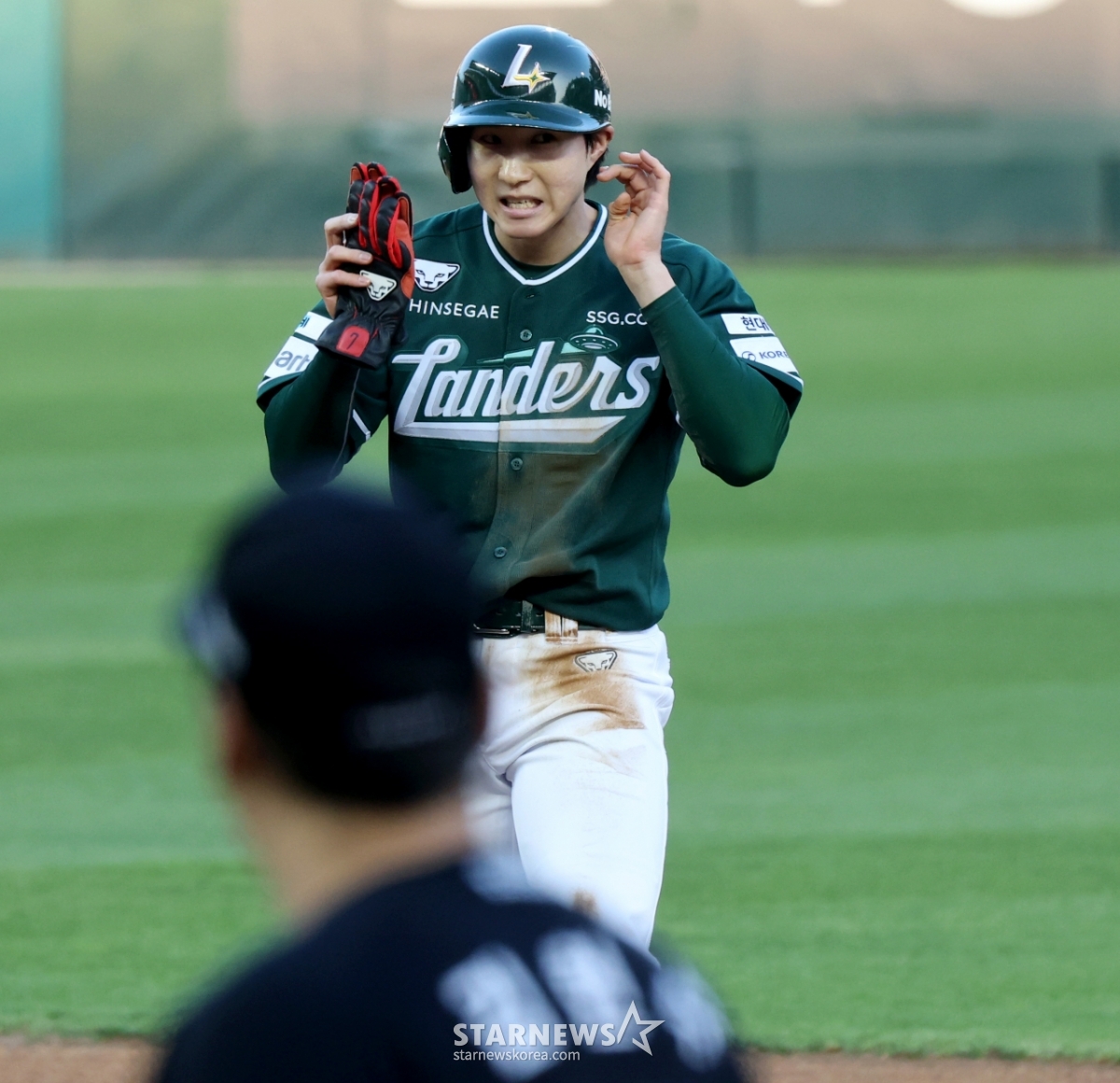 랜더스 1번타자 박성한이 24일 랜더스필드에서 열린 2026 KBO리그 SSG랜더스와 KT위즈 경기 1회말 첫 타석에서 보쉴리를 상대로 2루타를 터트렸다. 박성한은 개막 이후 안타 행진을 이어오고 있었다. 그는 22경기 연속 안타를 기록했다.