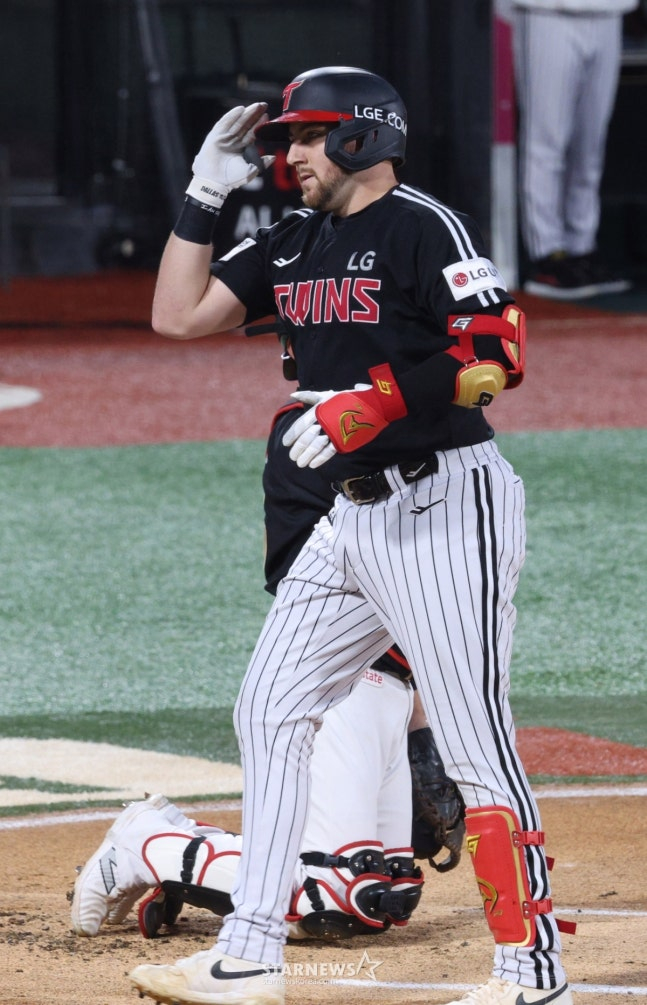 LG 선발 톨허스트는 5이닝 7피안타 4볼넷 2탈삼진 5실점(5자책)을 기록한 가운데, 승리는 챙기지 못했다. 이어 함덕주(1이닝 1피안타 무실점)가 6회를 책임졌고, 김진수가 2이닝을 1피안타 2탈삼진 무실점으로 책임지며 꿈에 그리던 데뷔 첫 승을 따냈다. 이어 장현식(1이닝 노히트 무실점)이 세이브를 올렸다. 총 12안타를 몰아친 타선에서는 오스틴이 5타수 4안타 4타점 2득점으로 맹활약을 펼쳤으며, 천성호와 문성주가 멀티히트를 기록했다.