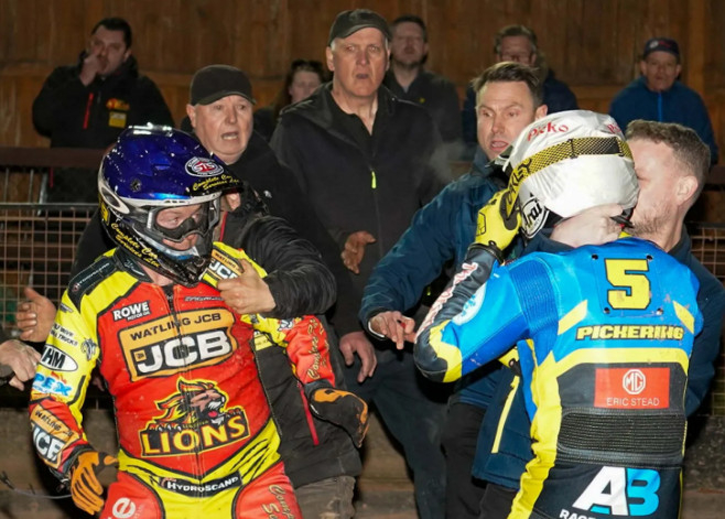 두 선수는 지난 23일 잉글랜드 레스터의 버몬트 파크에서 열린 '프리미어십 KO 컵 타이' 경기 도중 충돌했다. 레스터 소속인 하워스와 셰필드 소속의 피커링은 9번째 히트에서 치열한 접전을 벌인 후 감정이 격해졌다. 이들은 오토바이를 탄 채로 말싸움을 벌였고, 내리자마자 주먹다짐을 시작했다. 결국 양 팀 감독과 관계자들이 개입해 억지로 떼어놓은 후에야 상황이 진정됐다.