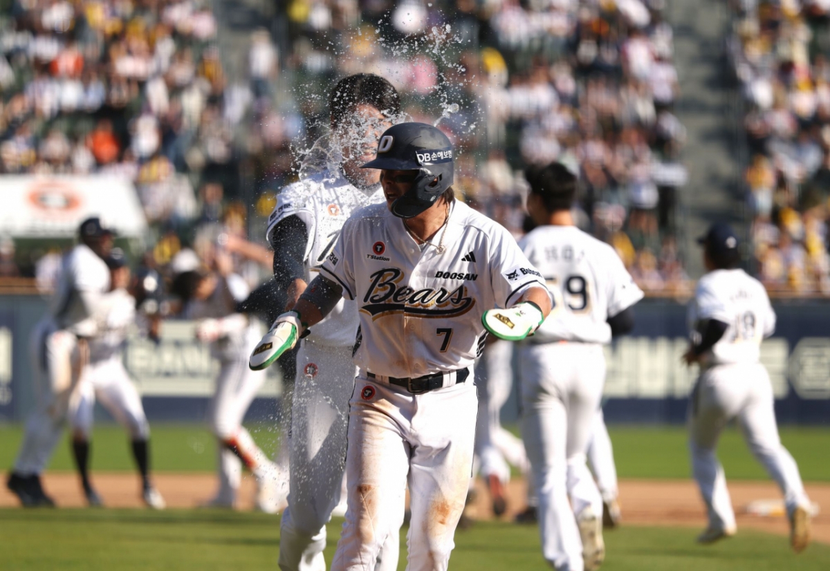 그러자 두산은 곧바로 이어진 7회말 동점을 만들었다. 선두타자 대타 김민석이 바뀐 투수 김진성의 초구를 공략, 우익선상 안쪽에 떨어지는 2루타를 때려냈다. 이어 정수빈의 희생번트 때 3루에 안착한 김민석. 후속 박찬호는 볼넷 출루 성공. 결국 카메론이 중견수 희생플라이 타점을 올리며 승부를 3-3 원점으로 돌렸다.