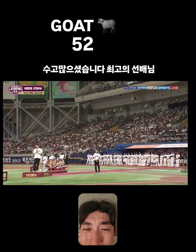 박병호는 은퇴사에서 "팬들 덕분에 행복했다"며 울컥하는 모습을 보였고, 이 모습을 화면으로 지켜본 이정후 역시 자신이 오열하는 사진을 함께 올리며 선후배 간의 끈끈한 정을 과시했다.
