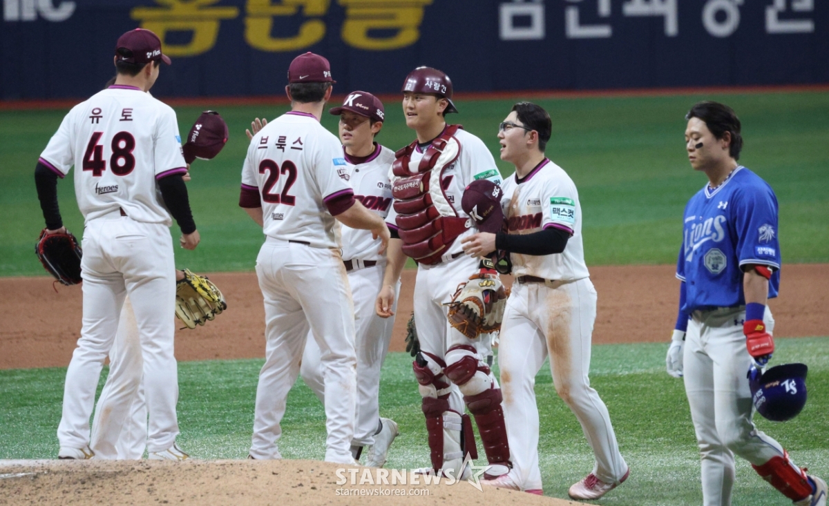 2026 신한 SOL KBO리그 키움 히어로즈 대 삼성 라이온즈 경기가 26일 서울 고척스카이돔에서 열렸다. 키움 히어로즈는 삼성 라이온즈에 2-0으로 승리했다. 키움 선수들은 승리 후 마운드에서 기쁨을 나눴다.