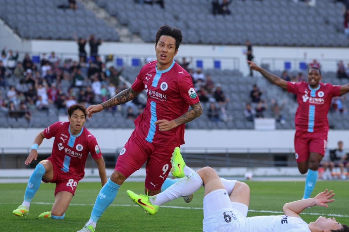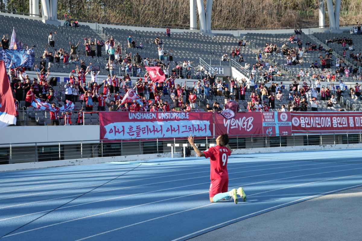 프로축구 K리그2 용인FC 공격수 석현준(35)이 말끝을 흐렸다. 26일 용인미르스타디움에서 열린 김해FC와의 하나은행 K리그1 2026 9라운드 홈경기를 마친 뒤 취재진과 만난 자리에서다. 이날 석현준은 K리그 데뷔골에 멀티골까지 터뜨리며 팀의 4-1 완승이자 창단 첫 승의 주역이 됐다. 그는 그러나 "골을 너무너무 넣고 싶었지만, 사실 넣을 거란 생각은 못했다"고 털어놨다.