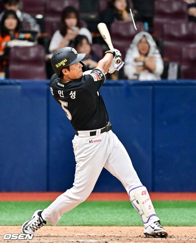 경기는 역전에 역전을 거듭했다. LG가 2-3으로 지고 있는 8회초 2사에서 문보경이 볼넷, 송찬의가 좌전 안타로 2, 3루가 됐다. 좌익수가 홈 승부를 하는 사이 송찬의가 재치 있게 2루를 훔쳐 KT를 더욱 압박했다.