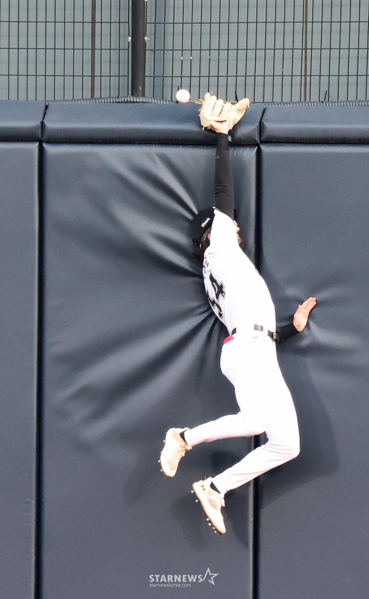 KT 중견수 힐리어드가 28일 수원KT위즈파크에서 열린 2026KBO리그 LG트윈스와 KT위즈 경기 1회초 홍창기의 타구를 잡아내지 못했다. 이 타구는 홍창기의 3루타로 기록됐다. 힐리어드는 아쉬운 수비를 보였다.