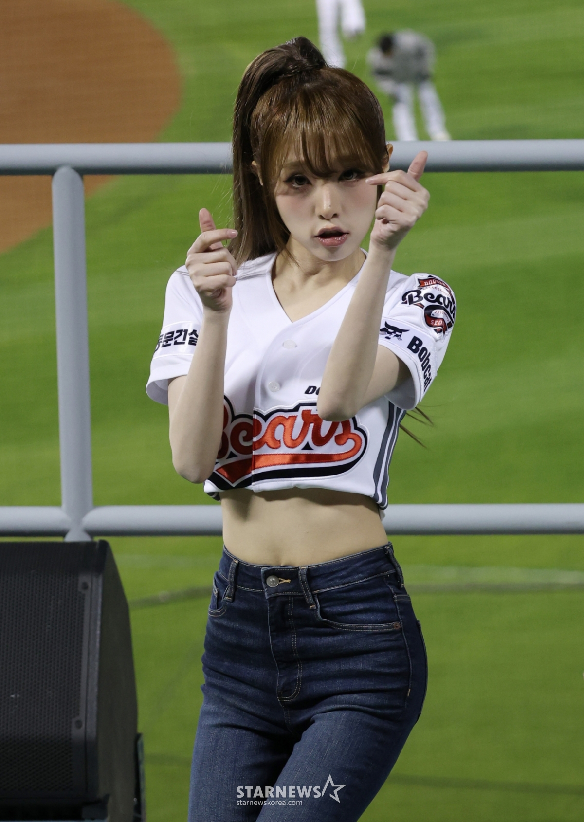 2026 신한 SOL KBO리그 두산 베어스 대 삼성 라이온즈 경기가 28일 서울 잠실야구장에서 열렸다. 가수 최예나가 두산 승리기원 시구를 했다. 최예나는 클리닝타임 때 응원단상에 올라 멋진 무대를 선보였다.
