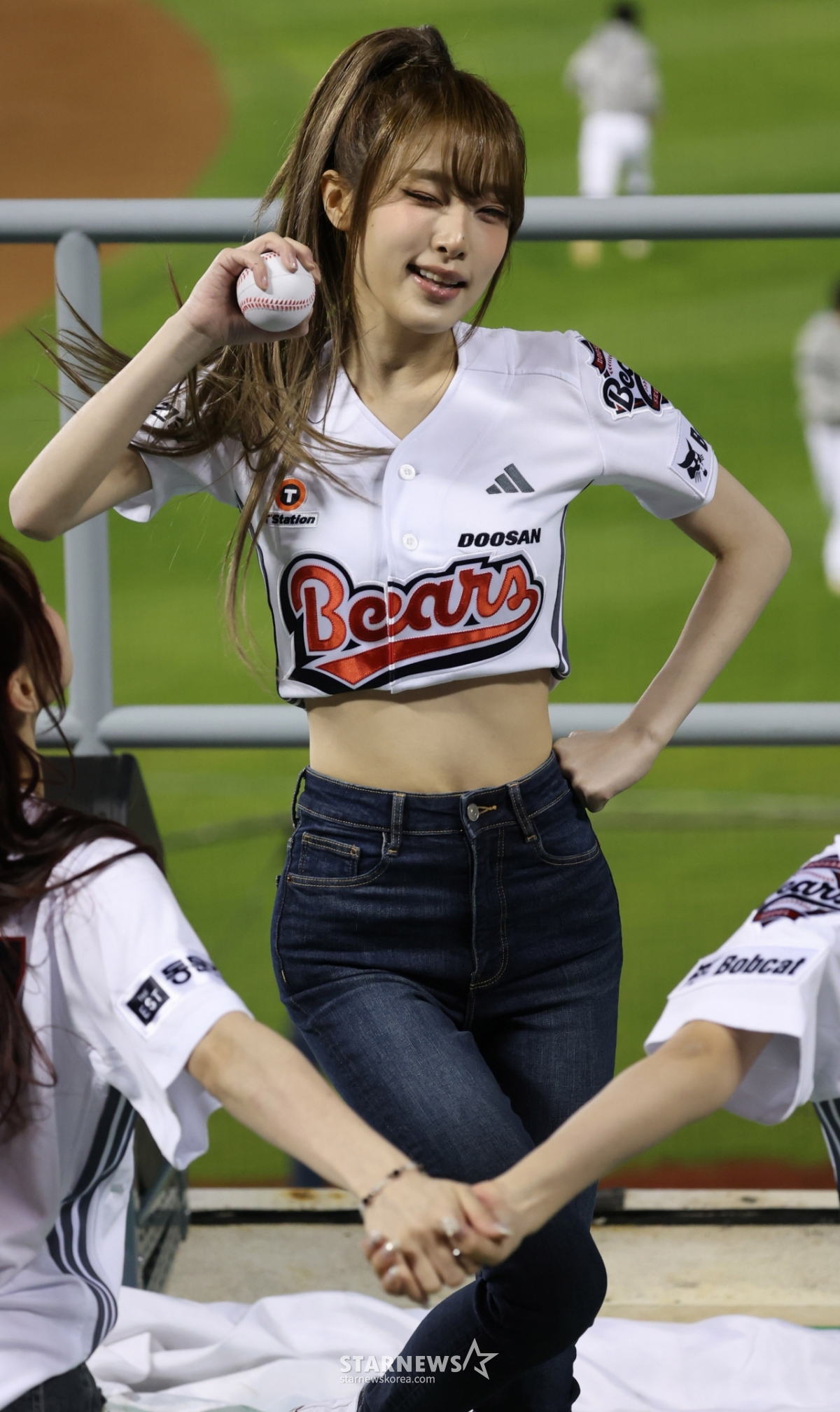 28일 서울 잠실야구장에서 2026 신한 SOL KBO리그 두산 베어스 대 삼성 라이온즈 경기가 열렸다. 가수 최예나가 두산 승리기원 시구를 했다. 최예나는 시구 후 클리닝타임 때 응원단상에 올라 멋진 무대를 선보였다.