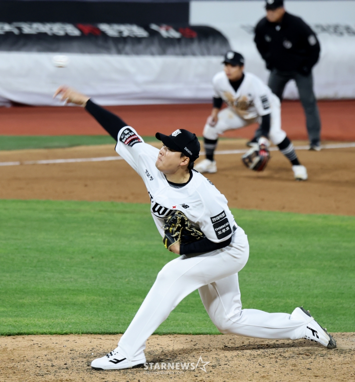 KT우완불펜 한승혁이 28일 수원KT위즈파크에서 열린 2026KBO리그 LG트윈스와 KT위즈 경기 8회초 등판하고 있다. 2026.04.28.