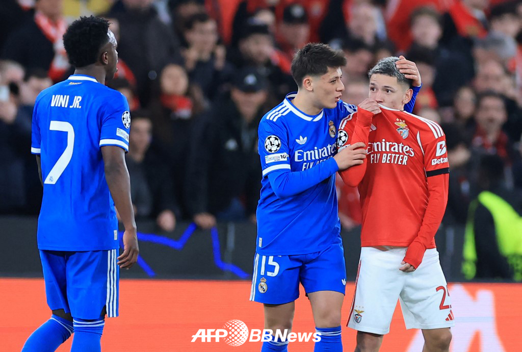 당시 아르헨티나 출신 잔루카 프레스티아니(벤피카)는 비니시우스 주니오르(레알 마드리드)와 언쟁을 벌이면서 유니폼을 들어 올린 채 입을 가렸다.