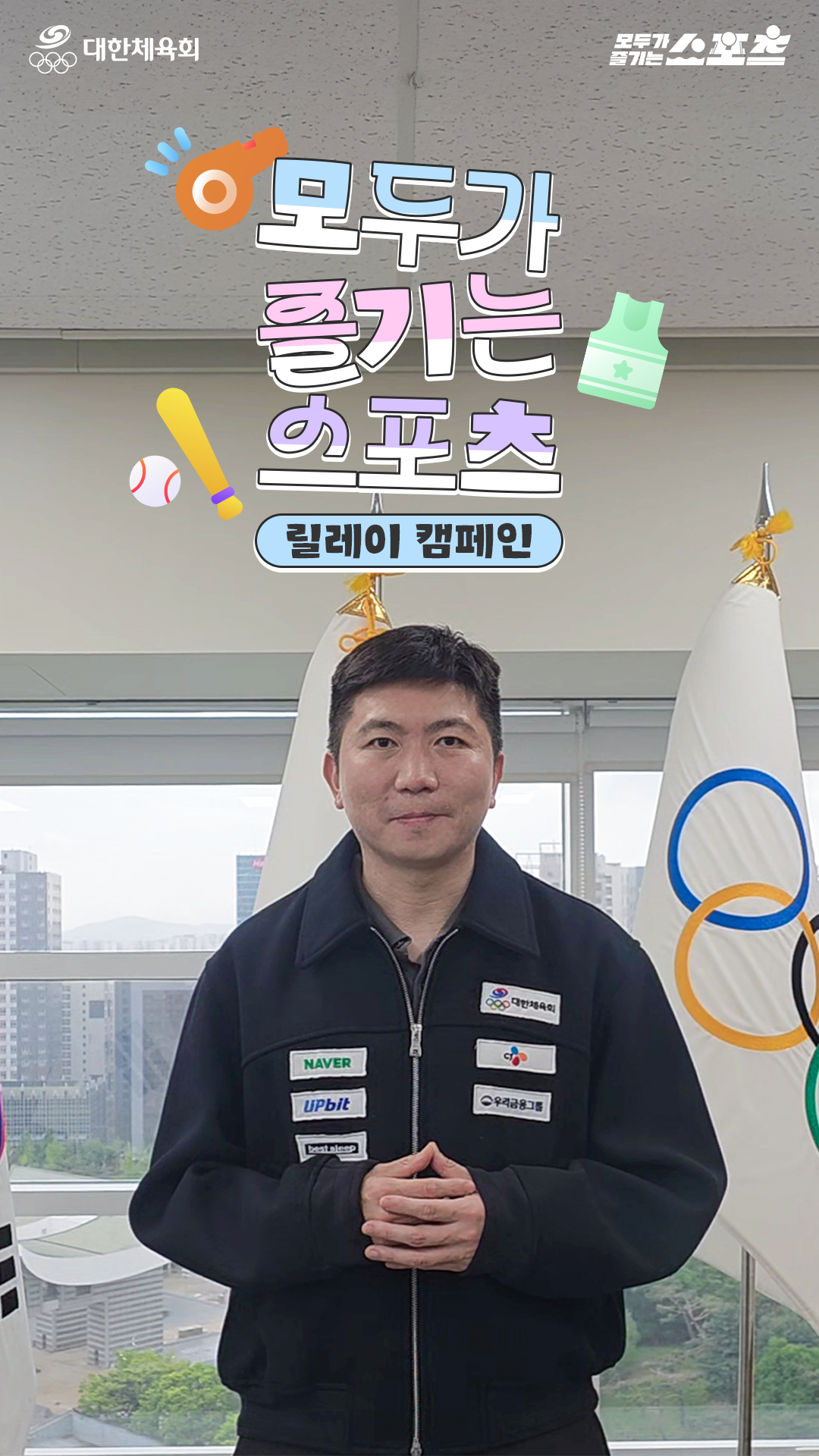 유승민 회장은 '모두가 즐기는 스포츠' 참여 잇기 캠페인 주자로 나서 생활체육 독려 메시지를 전달했다.