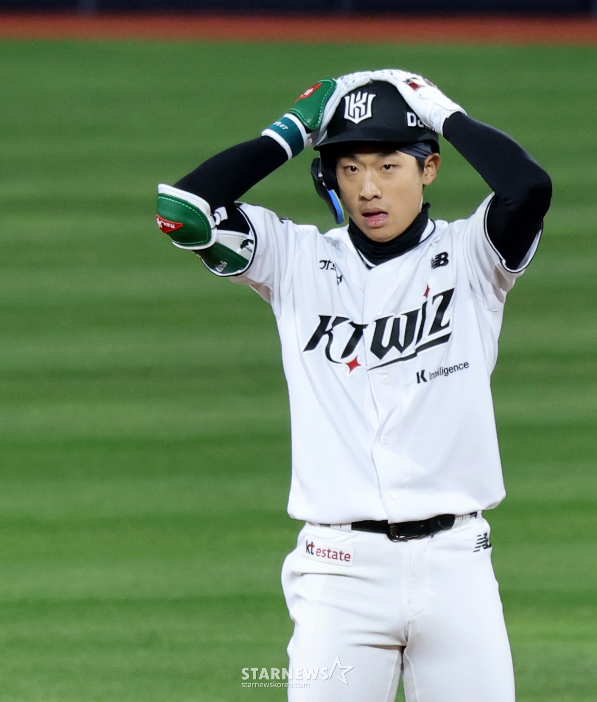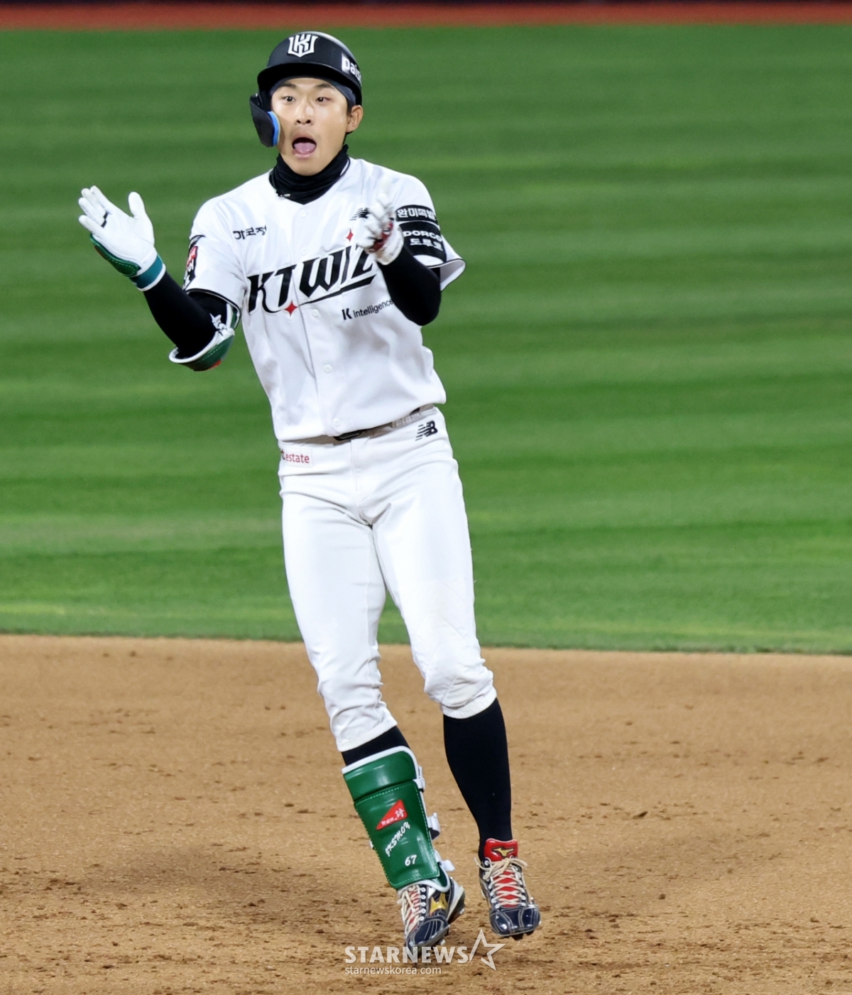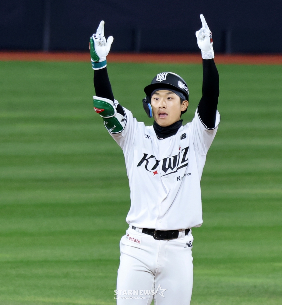 이강민 대타 유준규가 29일 수원KT위즈파크에서 열린 2026KBO리그 LG트윈스와 KT위즈 경기 7회말 2사 만루에서 2타점 동점 2루타를 터트렸다. 그는 2타점 동점 2루타를 터트린 후 자축했다. 이는 놓칠 수 없는 기회였다.